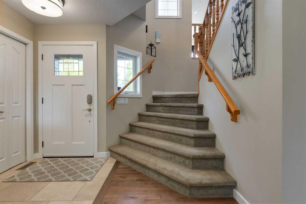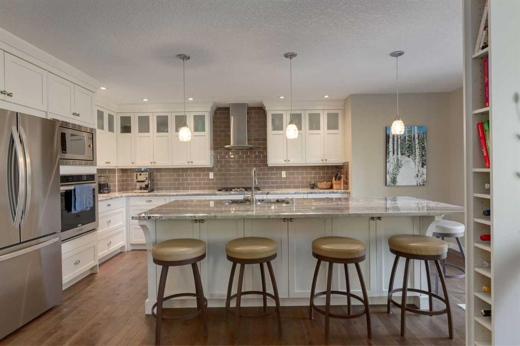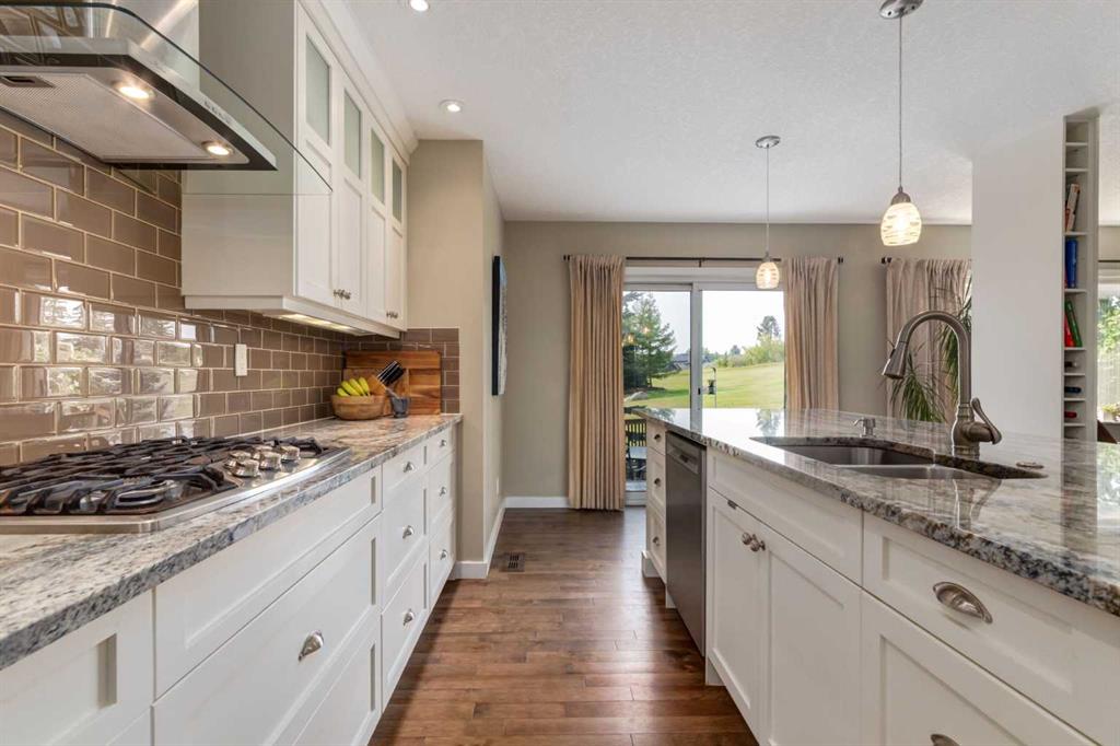 Tucked away in a quiet cul-de-sac and backing directly on to a lush green space, this home is the true epitome of family living. The low-maintenance backyard flows effortlessly into the park beyond - simply open the gate and your world expands into endless space for children to play, pets to roam, and neighbours to gather. Inside, the home radiates warmth and comfort with an open-concept design and updated birch hardwood floors throughout the main level. The inviting living room centres around a cozy fireplace, while the beautifully renovated gourmet kitchen strikes the perfect balance of timeless elegance and function. Granite countertops, custom ceiling-height cabinetry, stainless steel appliances (including a gas range), and a generous island with breakfast bar make it a natural hub for everything from Saturday morning pancakes to evening glasses of wine. The adjoining dining area is perfectly placed for family dinners and holiday celebrations, creating a seamless flow for everyday living and special occasions alike. Just off the garage, a well-designed mudroom with main floor laundry keeps busy family life organized with ease. Upstairs, a spacious bonus room invites game nights, movie marathons, or quiet afternoons with a book. The primary suite feels like a private retreat with its walk-in custom California Closet and a spa-inspired ensuite featuring a freestanding soaker tub and glass-enclosed shower. Two additional bedrooms share an updated full bathroom, completing this family-friendly level. The fully finished lower level adds even more versatility, with a cozy family room, guest bedroom, and flex space ideal for a home gym or office. Practical updates include two new hot water tanks (2025), recently serviced furnace and A/C (2025), new garage door, new LG refrigerator & well maintained roof. Outdoors, summer evenings come alive on the rebuilt deck, kids ride bikes and play street hockey in the cul-de-sac, and family walks wind through nearby pathways and parks. With Griffith Woods School (K–9), Ernest Manning High, Rundle College, Ambrose University, Westside Rec Centre, Aspen Landing, West Hills Towne Centre, Stoney Trail and the C-Train all nearby, every convenience is close at hand. This is more than a house - it’s a warm and welcoming family home, designed for everyday moments and lasting memories.