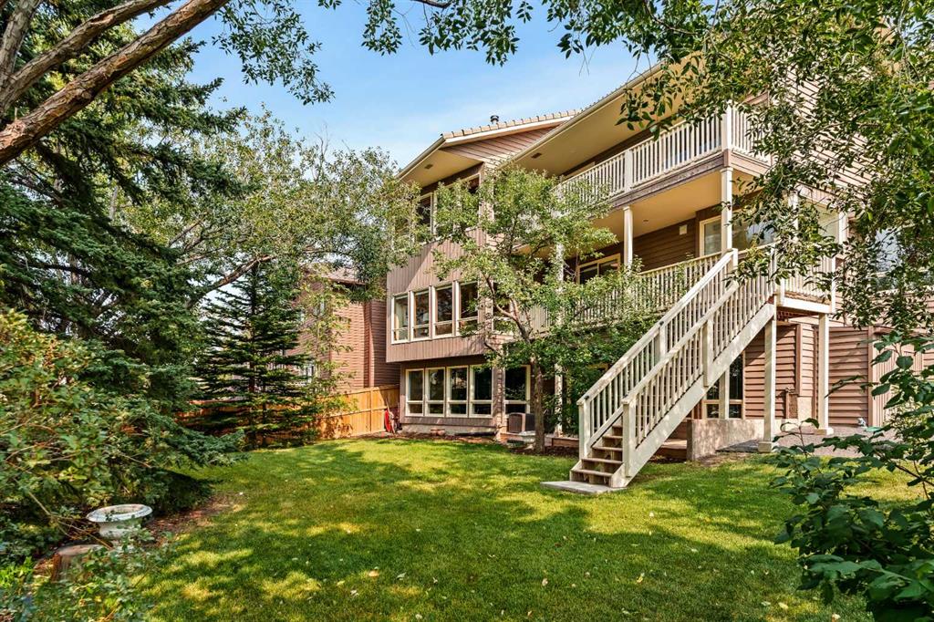Tucked away on a quiet crescent, surrounded by mature trees and lush landscaping, this distinguished brick-facade residence offers a rare opportunity to own in one of Edgemont’s most desirable enclaves. Pride of ownership shines throughout this private property, set on a 0.20-acre lot with over 5,000 sq. ft. of total living space. Inside, hardwood floors carry through the main level, where a soaring lofted wood-plank ceiling and striking stone-surround fireplace create a warm and inviting focal point. Skylights and expansive windows flood the home with natural light, while the updated kitchen features custom cabinetry, premium finishes, and seamless flow to the dining and living areas. Upstairs, you’ll find three spacious bedrooms, including a serene primary suite with a spa-like ensuite and generous closet space. The fully finished lower level adds two more bedrooms, a full bath, and versatile living areas ideal for a recreation room, home office, or gym. An attached double garage, multiple gathering spaces, and an expansive landscaped yard complete the offering—perfect for quiet enjoyment or entertaining. Beyond the home, Edgemont offers unmatched convenience and lifestyle. Families will appreciate access to top-rated schools, numerous parks, and scenic walking and biking pathways. Daily errands are effortless with nearby shopping at Edgemont Village, Market Mall, and Crowfoot Centre. Quick access to major routes makes commuting downtown or escaping to the mountains a breeze, while the community’s reputation for safety, strong schools, and natural beauty makes it one of Calgary’s most sought-after neighbourhoods. Rarely do homes come to market in this pocket of Edgemont. This is your opportunity to enjoy timeless character, modern updates, and an unbeatable location.