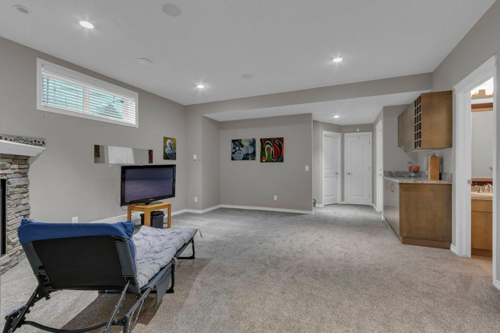 Downstairs, you’ll find a bright and inviting family room with a gas fireplace, a wet bar, two oversized bedrooms, a full bathroom, and extra comfort with electric baseboard heating. Plenty of storage is available throughout.
