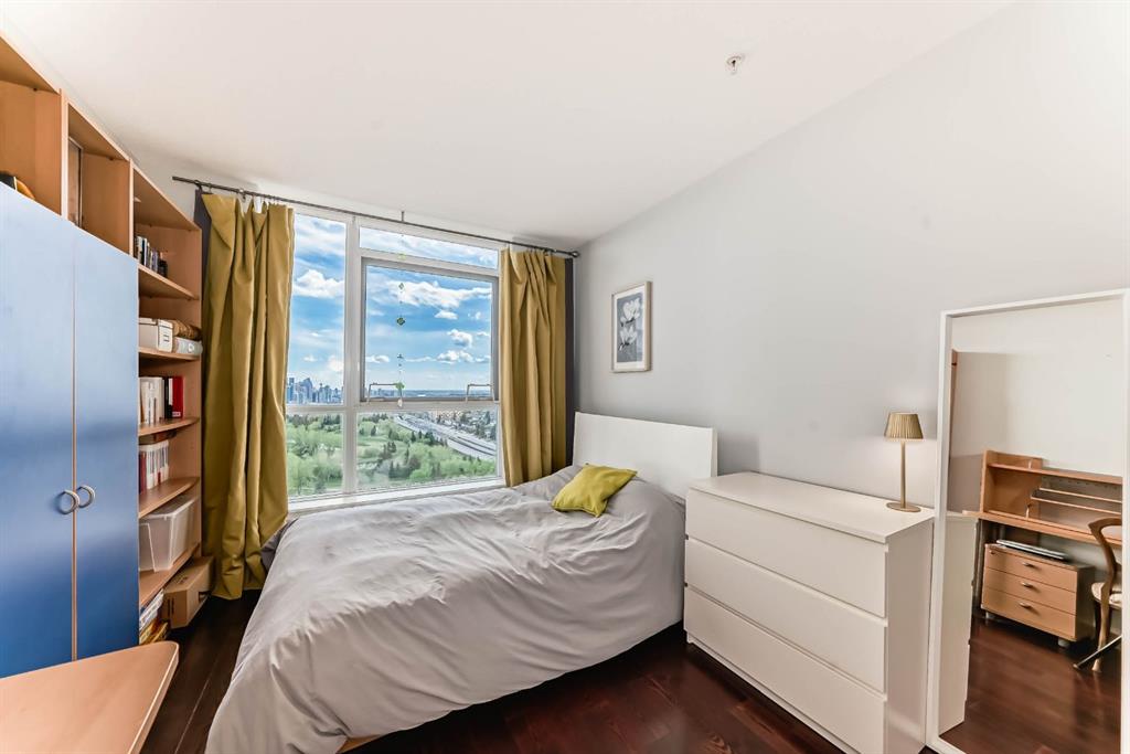 Location, Location, Location! View, View, View! Unbeatable Location with Breathtaking Views of Downtown & Shaganappi Point Golf Course. Spectacular 1,023 sq.ft condo with 2-bedroom plus Den, 2-bathroom unit is designed to impress and provide the ultimate convenience. Experience luxury living in Encore, where stunning panoramic city view greet you from the living room, both bedrooms and Two private balconies. This spacious, beautifully maintained unit boasts Newly replaced cabinetry, granite countertops with island in the kitchen and bathrooms, stainless steel appliances, and upgraded hardwood floors. Central air conditioning ensures year-round-comfort, while the two bedrooms plus a den provide ample space for work and relaxation. A cozy corner gas fireplace. Bright with floor to ceiling windows. Enjoy top-tier Amenities, including a large indoor pool, hot tub, fully equipped gym, game room, and on-site caretakers. With full-time security, titles underground heated parking, and a storage locker, convenience and peace of mind come standard. Ideally located just steps from the C-train station and Westbrook Shopping-mall (featuring Walmart, Safeway, foodcourt...), surrounded by river pathways, Shaganappi Golf Course, and city convenience, this is urban living at its finest. Don't miss this opportunity and schedule your private viewing today!