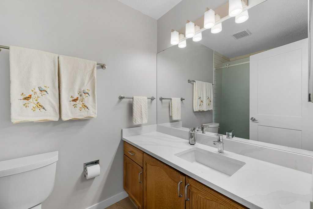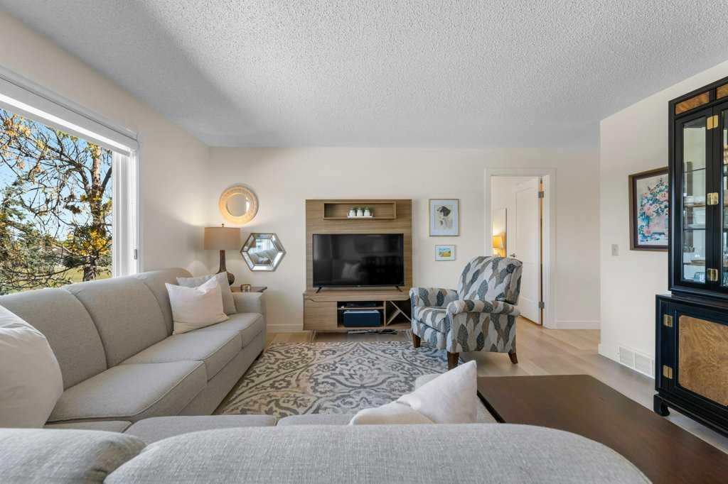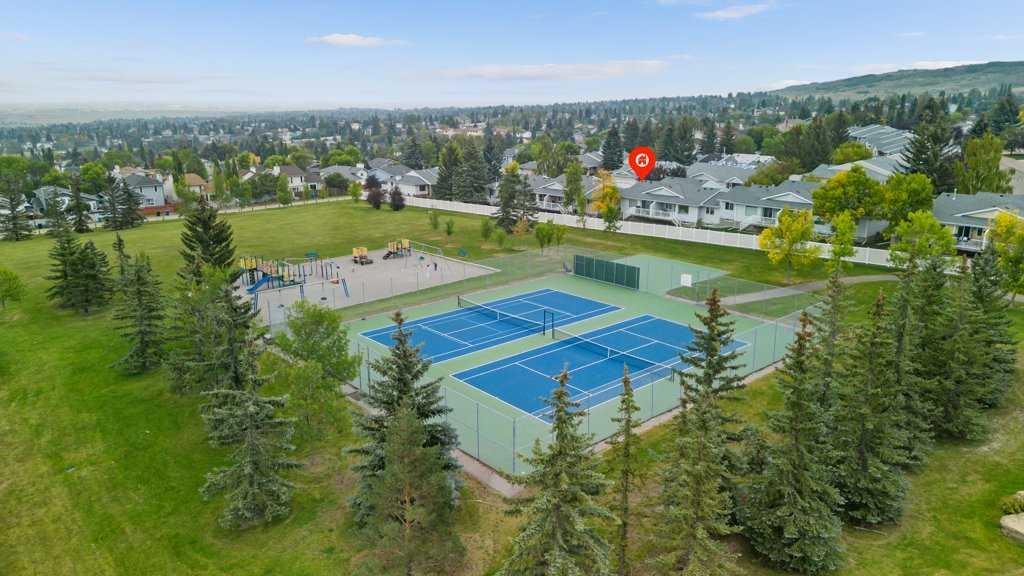 SUBSTANTIALLY RENOVATED VILLA! Are you looking for a QUIET RENOVATED BUNGALOW VILLA with no homes behind? Do you want a location where grandkids have plenty to do? Do you love TENNIS or PICKLEBALL? How about a 55+ VILLA on a LARGE GREENSPACE, with a view of TENNIS & PICKLEBALL (surrounded by mature trees), plus two open soccer fields, a ball diamond & a playground, all visible from your back deck? FANTASTIC VIEW for SEVERAL KILOMETERS!! When you move into a HORIZON VILLAGE community you gain a whole new lifestyle with plenty of new friendships centered around the COMMUNITY CLUBHOUSE for social events (both organized and spontaneous). Are you thinking of doing fewer chores and having more fun? You can THROW AWAY YOUR LAWNMOWER and your SNOW SHOVEL. Come see 83 Macewan Park Heights, an END-UNIT in a fantastic location! The front of this home is welcoming, NICE CURB APPEAL and nicely landscaped with an attractive sandstone retainer and a patio to sip your morning coffee. Step in the front door to this beautiful BUNGALOW with ATTACHED GARAGE. This villa is wide, giving lots of windows at the back of the home for PLENTY OF NATURAL LIGHT. AMAZING UPGRADES! You will love the vinyl plank flooring - durable and attractive! How about CENTRAL AIR CONDITIONING and TRIPLE PANE WINDOWS which are great for ENERGY EFFICIENCY (and QUIET). GREAT FLOOR PLAN. Two bedrooms on the main level, one with a built-in hide-a-bed so you can use the space for an office or a guest bedroom. The PRIMARY BEDROOM has an ENSUITE BATHROOM that you don't find in many villa floor plans. The SPACIOUS U-SHAPED KITCHEN has open sight lines to the dining and living rooms, plus the outdoor deck, and the green space out back! You will love sitting on the PARTIALLY COVERED back DECK with a privacy wall, and aluminum railing with a gate at the stairs to keep the puppies or grandchildren safe. The LOWER LEVEL is FINISHED and has a SPACIOUS REC ROOM with TV area and an ATTRACTIVE CORNER GAS FIREPLACE to keep the basement cozy all year round, plus another full bathroom and a hobby room (or office area if you prefer). The main floor bathrooms have been BEAUTIFULLY RENOVATED! So many updates and upgrades! Recent improvements include: BASEMENT SURROUND SPEAKERS and CENTRAL AIR CONDITIONING in 2016. A major upgrade to TRIPLE PANE PATIO DOOR and TRIPLE PANE WINDOWS throughout the home in 2018 (plus new toilets in 2018). UPGRADED THERMOSTAT and FAN FOR THE FIREPLACE in 2019. VINYL PLANK FLOORING plus a NEW DRIVEWAY in 2020. NEW DISHWASHER and WATER HEATER in 2021. Queen-sized MURPHY BED and a NEW WASHER in 2022. The main and ensuite BATHROOMS were very NICELY RENOVATED in 2021. NEW INTERIOR DOORS, BASEBOARDS and TRIM on the main level (plus new custom HUNTER DOUGLAS BLINDS) in 2023. NEW FRONT DOOR, SCREEN and A SMART LOCK in 2024, plus a NEW ROOF in 2024! Short distance to Macewan Plaza or several major shopping locations. Walking paths connect to Nose Hill Park and more!