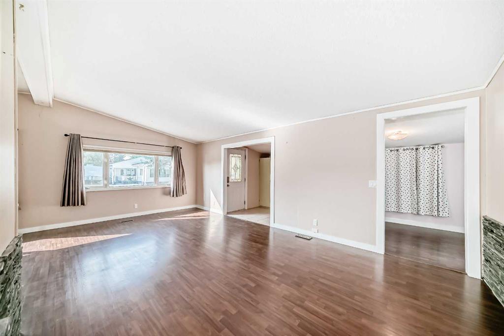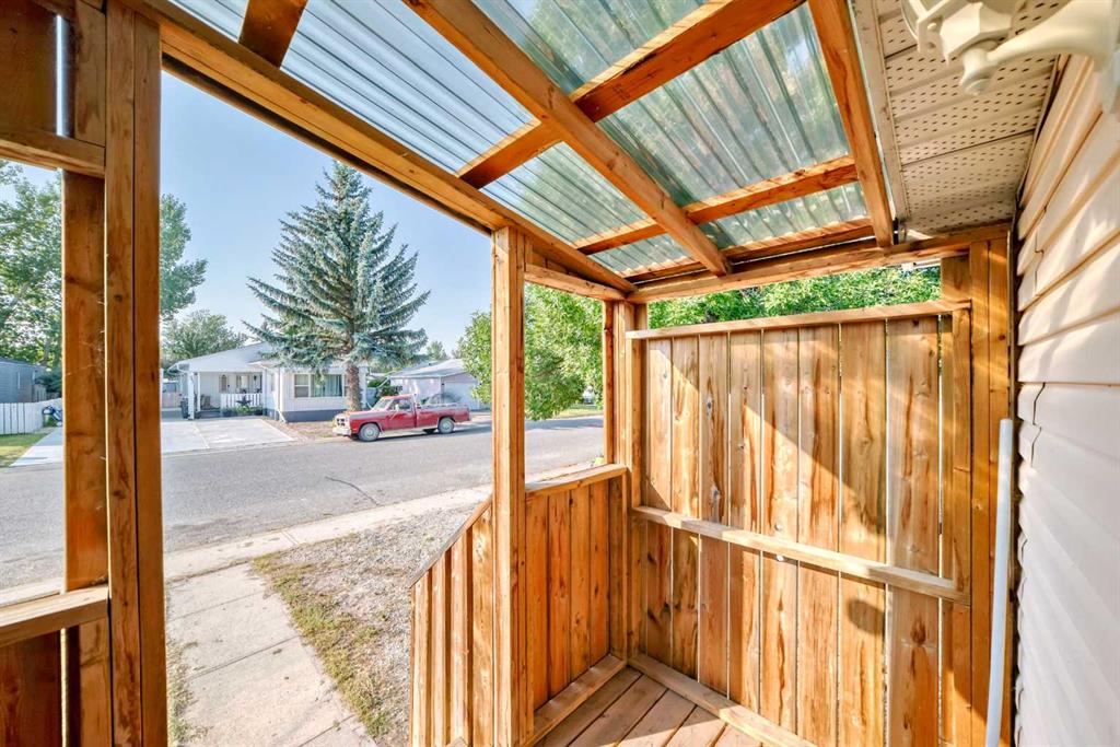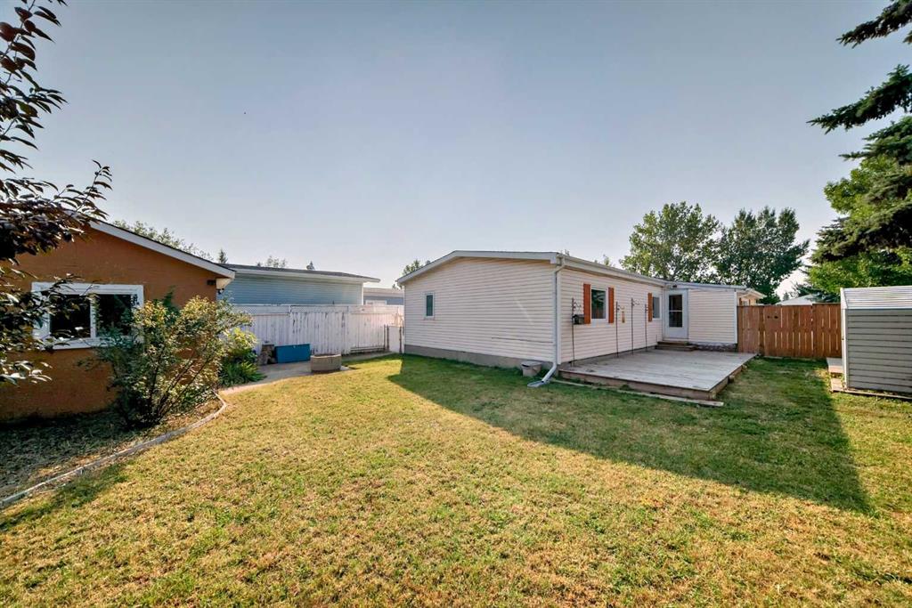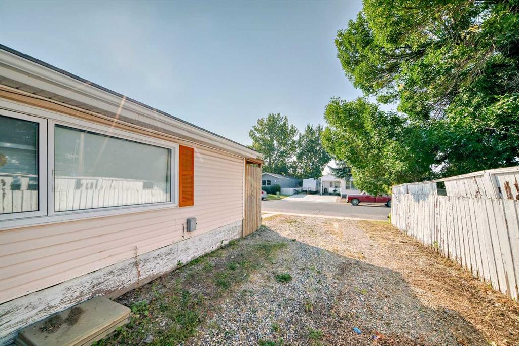 The master bedroom features a three-piece ensuite and plenty of closet space. Two additional bedrooms and a four pce bath finish off this single level home. A side mudroom with backyard access houses the laundry area for added convenience. The front foyer opens to a porch, and outside there is room for two vehicles in the side driveway. There is an addition to the side of the mobile home which could be an office or just a huge mud room that goes into the backyard that is fully fenced and landscaped . Located close to all the amenities including schools, hockey arena, swimming pool, and just minutes from shopping, this home offers convenience without being right in the heart of town. With easy access to the Trans-Canada Highway and only a short half-hour drive to Calgary, this property combines affordability with lifestyle. Don’t miss the chance to make it yours.