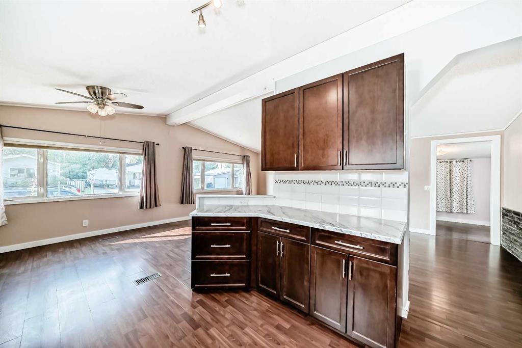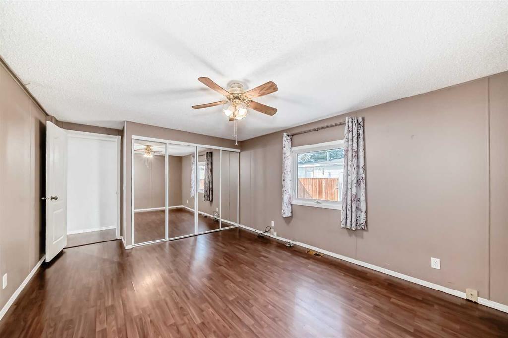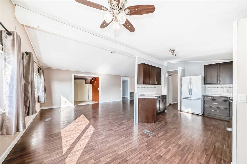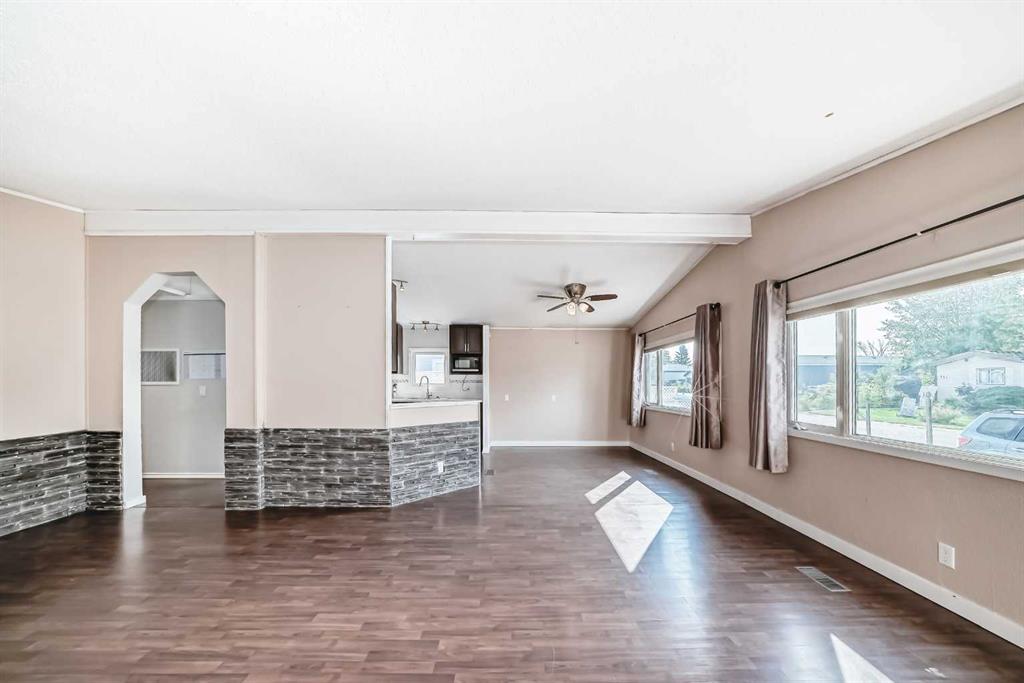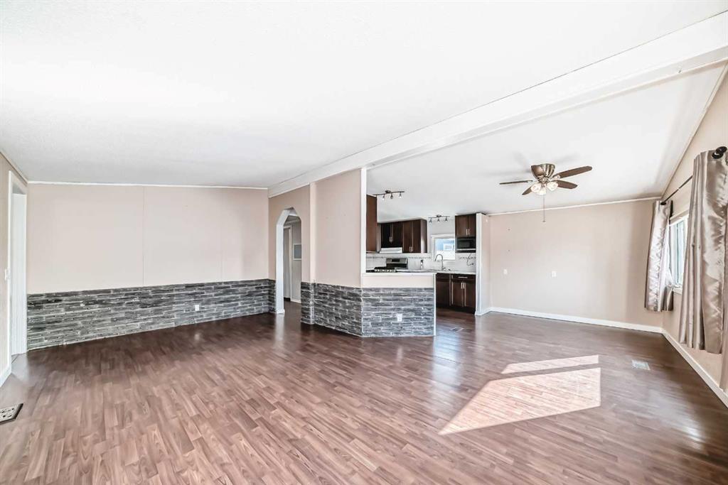 The master bedroom features a three-piece ensuite and plenty of closet space. Two additional bedrooms and a four pce bath finish off this single level home. A side mudroom with backyard access houses the laundry area for added convenience. The front foyer opens to a porch, and outside there is room for two vehicles in the side driveway. There is an addition to the side of the mobile home which could be an office or just a huge mud room that goes into the backyard that is fully fenced and landscaped . Located close to all the amenities including schools, hockey arena, swimming pool, and just minutes from shopping, this home offers convenience without being right in the heart of town. With easy access to the Trans-Canada Highway and only a short half-hour drive to Calgary, this property combines affordability with lifestyle. Don’t miss the chance to make it yours.