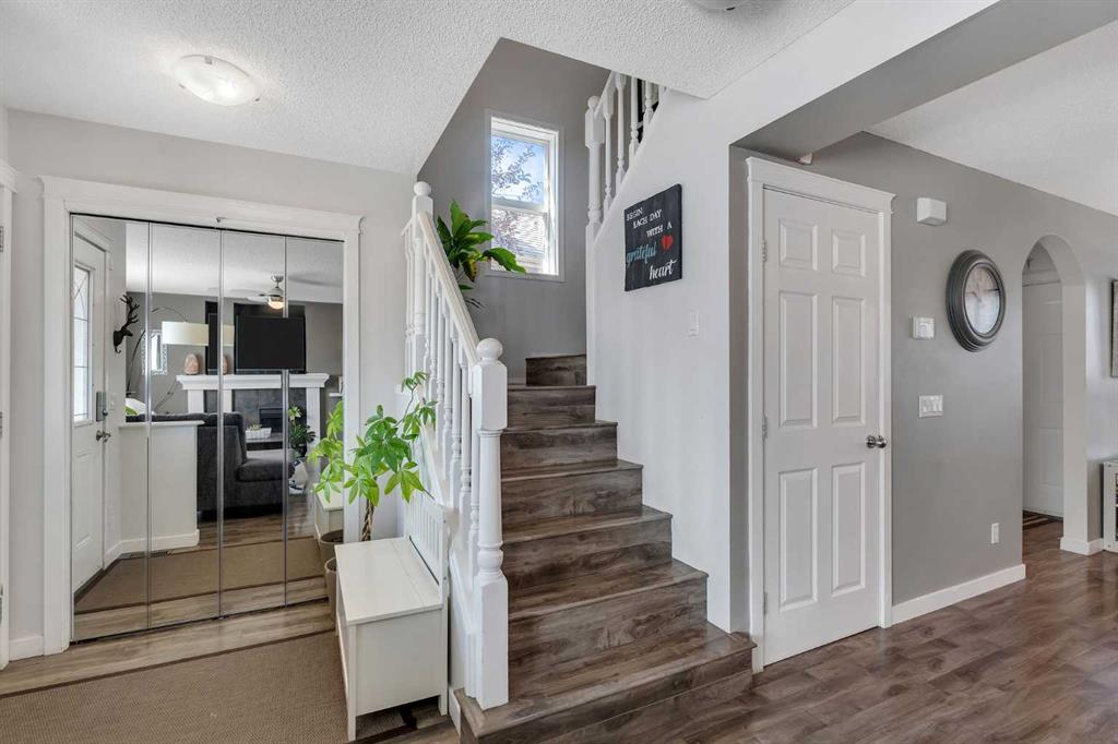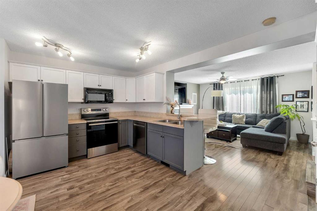 Looking for a home that makes family life easier and more enjoyable? The family-friendly community of Sagewood is ready to welcome you home! Discover the perfect blend of comfort and function in this sun-filled open-concept layout. Through the updated kitchen you’ll find a powder room next to the mud area, which leads to a full-width deck in the backyard, perfect for soaking up the sun and entertaining. With a larger lot than most, there's no need to sacrifice yard space for parking! Families will appreciate the double detached garage backing onto a paved alleyway lined with scenic walking paths that give direct access to Airdrie’s extensive trail network. These paths lead you to a beautiful canal a few blocks away. Upstairs, you'll find all three bedrooms and a full bathroom thoughtfully located together. The fully finished basement offers extra living space with endless potential for a teen hangout, a home office/gym, or a homework area, complete with another full bathroom. C.W. Perry Middle School and the Monkland Fields are situated within walking distance, making your morning routine and after-school activities a breeze. Enjoy quick access to weekend fun and relaxation at Woodside Golf Course across 1st Avenue. This welcoming and walkable community offers a lifestyle you’ll love coming home to!