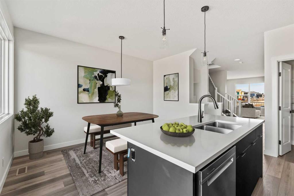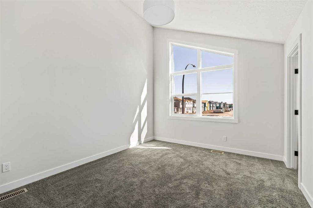 This beautiful brand-new home is located in Seton's newest area, Seton Ridge, and features 3 bedrooms, 2.5 bathrooms, two distinct living areas, and a full basement that awaits your imagination! The 'Wicklow' model by Brookfield Residential is the perfect modern design, providing nearly 1,700 square feet of thoughtfully developed living space spread over two levels. The main floor boasts expansive east-facing front windows allowing natural light to flood the living space all day long while ensuring optimal sunshine in the backyard during the evening. The open-concept layout is enhanced by 9-foot ceilings, offering a bright, comfortable living environment. The kitchen is a standout with full-height cabinetry, a central island, a large corner pantry, and a complete suite of stainless-steel appliances, including a chimney-style hood fan and built-in microwave as well as a gas-line for the range. The kitchen seamlessly flows into the dining area, with sliding patio doors leading out to the backyard—perfect for indoor-outdoor living. On the upper level, a central bonus room acts as a divider, offering privacy between the spacious primary suite and the two additional bedrooms. The primary suite features a walk-in closet, and a luxurious 4-piece ensuite with dual sinks and a walk-in shower. Two more bedrooms, a full bathroom, and an upper-level laundry room complete this level. The basement is ready for the new owner’s imagination with 9' foundation walls, a 200 amp panel, suite rough-ins in place and a private side entrance that provides direct access to the basement (suiting the basement would be subject to local municipality guidelines and approval). There is ample space for a generously sized living area, an additional bedroom, and a full bathroom if the additional space is needed for a larger family. The west-facing backyard has ample space for the family and leads to the double parking pad which can accommodate a detached garage if desired. This home comes with a builder's warranty, as well as the Alberta New Home Warranty, giving you peace of mind. Situated a short walk from the endless amenities in Seton and the South Calgary Health Campus, this property is the perfect family home or ideal for investors. **Please note photos are from a show home model and are not an exact representation of the property for sale.