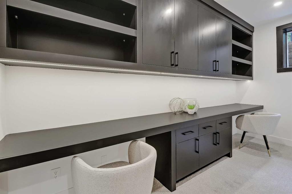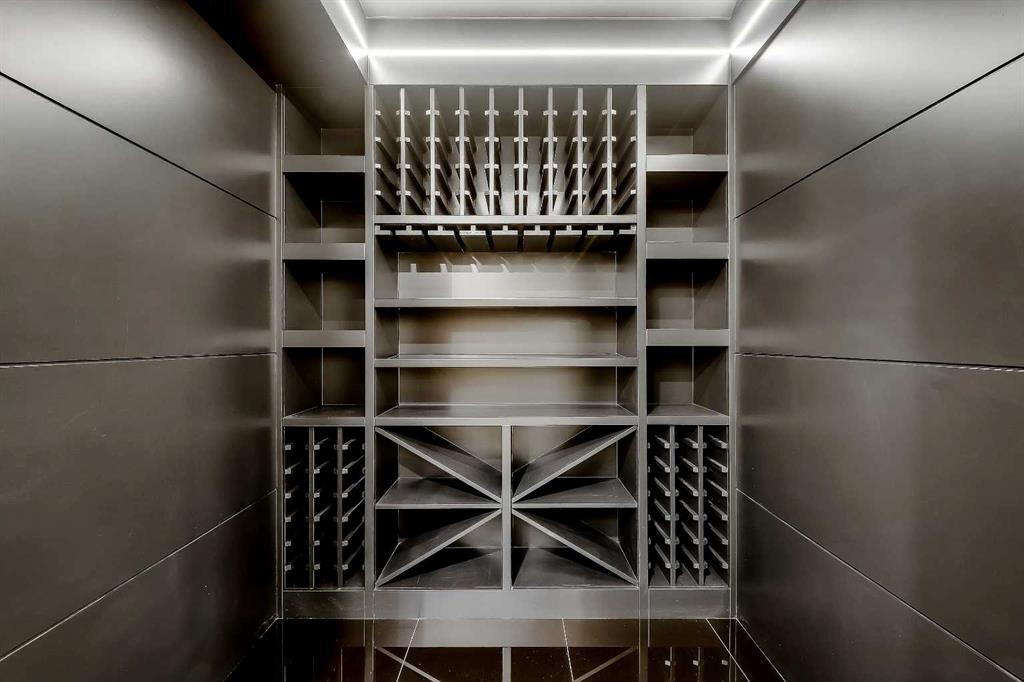 Downstairs, the fully finished basement is designed for comfort and versatility. There’s a spacious rec room with a built-in wet bar in matte black and glossy tile, plus a fourth bedroom, full bathroom, and a blacked-out wine cellar with custom shelving. A quiet home office adds a functional work or homework space, and a home gym completes this incredible home.
