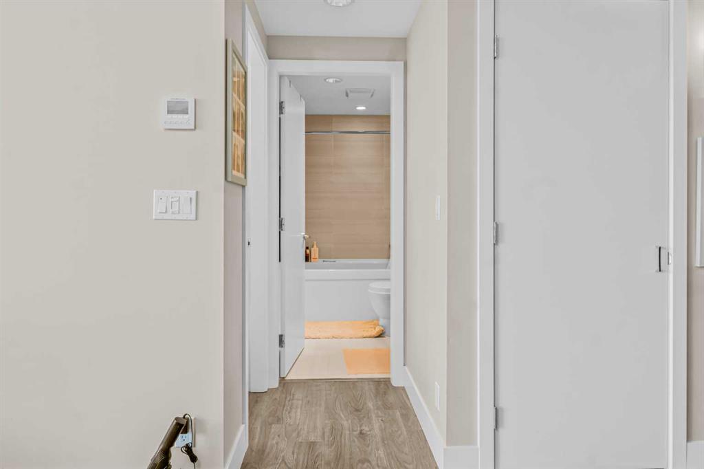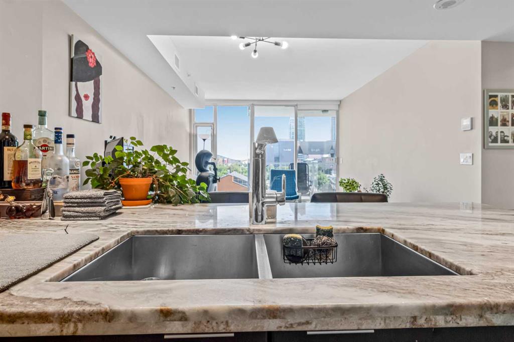 Experience luxury living in this 1 bed, 1 bath condo at the iconic Evolution in East Village. It features floor-to-ceiling windows with views of the Saddledome and Calgary Tower, chef’s kitchen with gas range, granite counters, central air conditioning and ensuite. Enjoy a spacious balcony with amazing Views. This unit comes with storage locker, and premium amenities including 24 hours security/concierge services, fitness centre, sauna, and BBQ area. Steps away from Studio Bell, grocery stores, RiverWalk, LRT, Library, and top restaurants. Don't miss on this "Stunning Living in East Village"— book your private tour today!