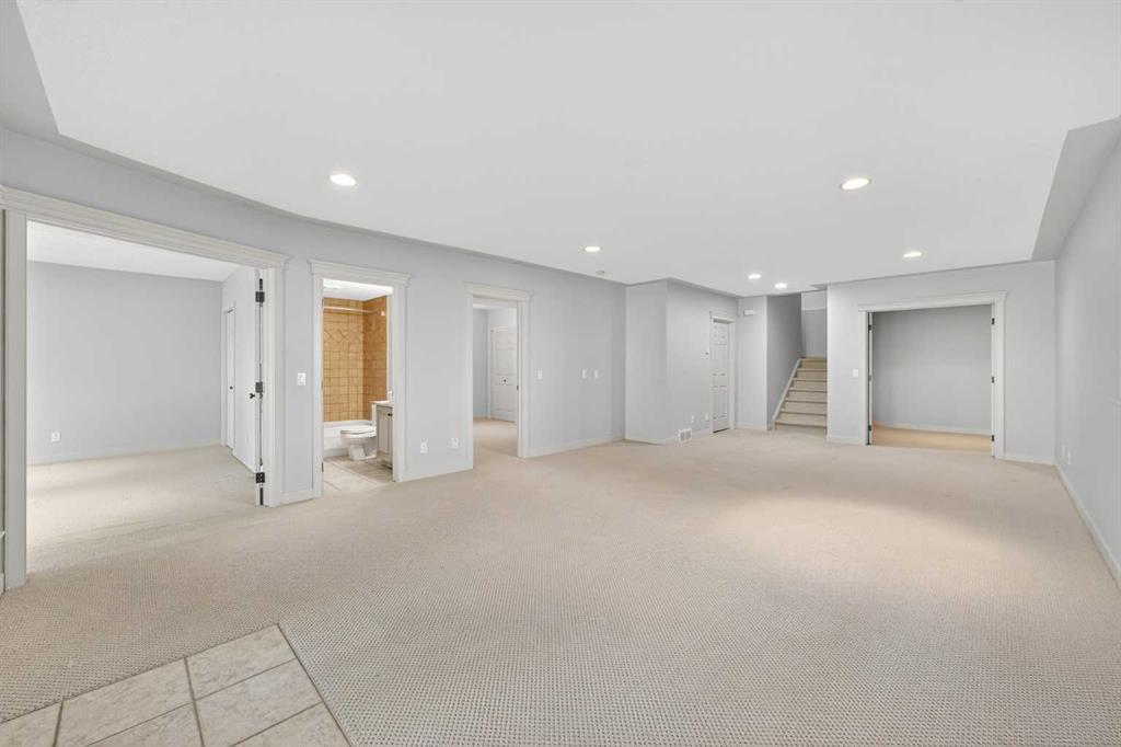 Upstairs you’ll find three generously sized bedrooms, including the primary retreat with a walk-in closet and a 5-piece ensuite featuring double vanity, granite countertops, a jetted tub, and separate shower. One of the secondary bedrooms also has a walk-in closet, and this level is complete with another full bath. The walkout basement expands your living space with two additional bedrooms, a full bath, theatre/media room, and a large Rec room—all warmed by radiant in-floor heating.