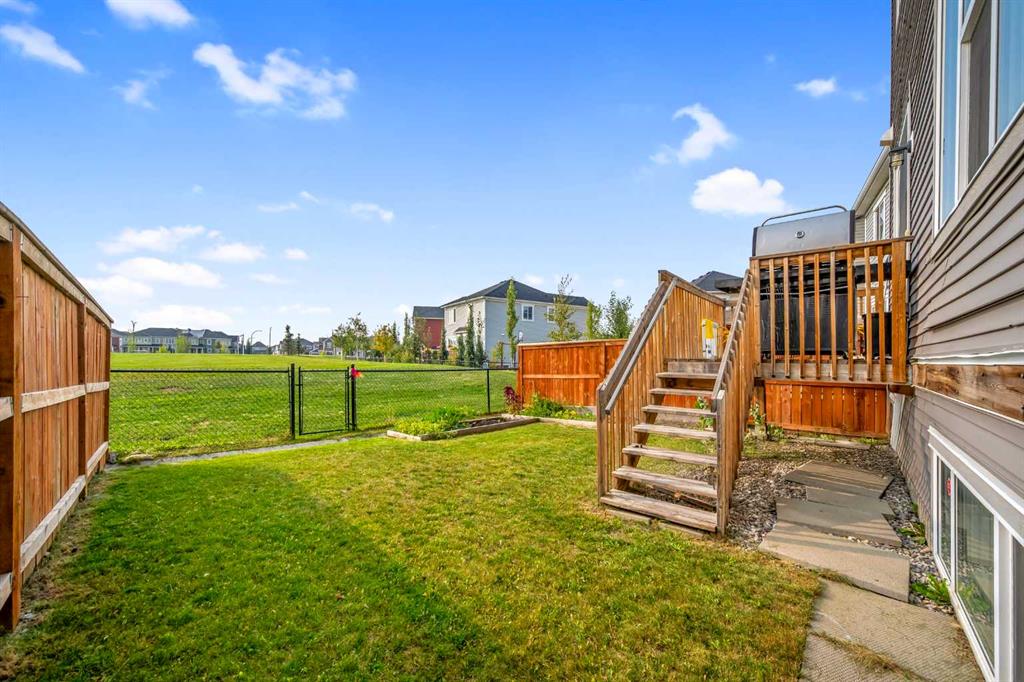 This beautifully maintained 2-storey home with a double attached garage is perfectly situated on a quiet cul-de-sac in the heart of Cityscape NE, backing directly onto a large playground and green space for ultimate privacy and a safe, open area for children to play. The main floor boasts a bright, open-concept layout anchored by a gourmet kitchen featuring a built-in oven, built-in microwave, sleek upgraded appliances, and modern cabinetry, flowing seamlessly into the dining and living areas with direct access to a spacious back deck. Upstairs offers a generous bonus room, a serene primary suite with walk-in closet and ensuite, two additional bedrooms, a full bathroom, and a convenient laundry room. The fully developed basement includes a recreation area, second kitchen, additional bedroom, and full bathroom—ideal for extended family or guests. With a front balcony for morning coffee, a backyard perfect for entertaining and quick access to Country Hills Drive, Metis Trail, and nearby amenities, this home delivers the perfect blend of style, comfort, and location.
