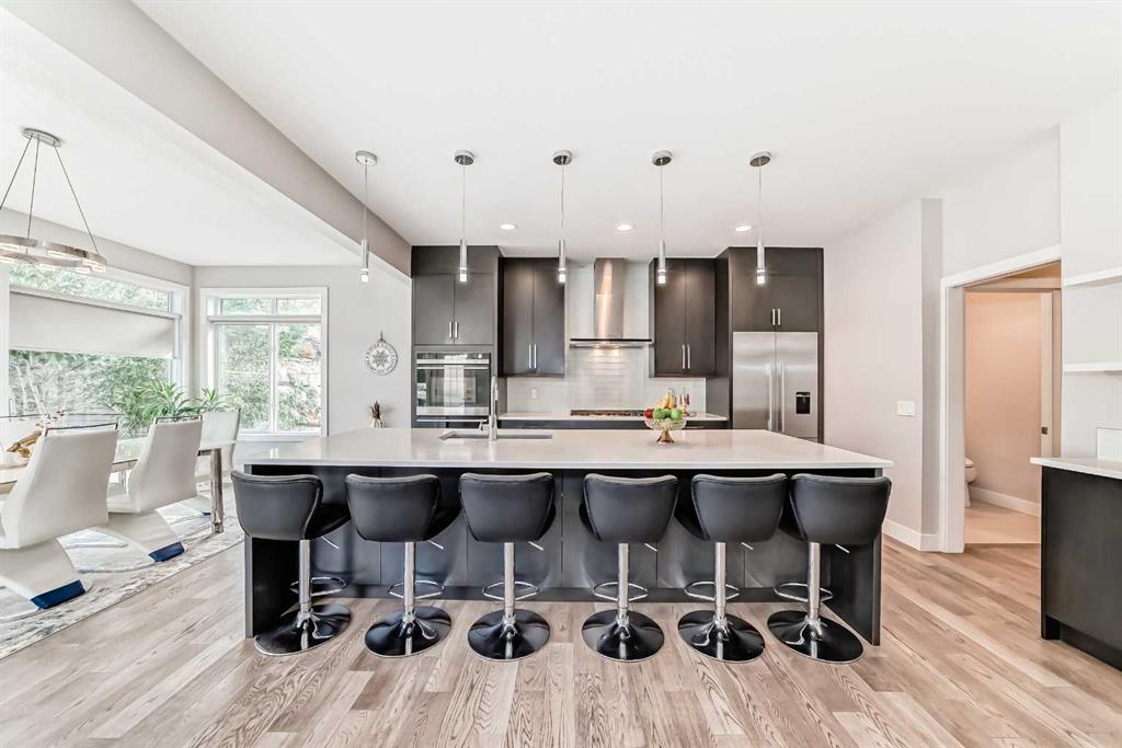 Rarely available, extensively upgraded detached home. The open-concept main floor features a bright living room with large windows, a gourmet kitchen with quartz counters, oversized island, double oven & dishwasher, built-in fruit fridge, and walk-in pantry connecting to the double garage. Additional highlights include ceiling-mounted surround sound and a versatile office. Upstairs offers four bedrooms, including a luxurious primary suite with walk-in closet and spa-inspired 5-pc ensuite. The fully finished basement adds a wet bar, guest suite/office, full bath, gym/media room, and storage. Enjoy a private, terraced backyard with lush landscaping, stone pathways, and garden space—perfect for entertaining or relaxing. The home has undergone multiple significant upgrades, including new high-efficiency furnace(2025) and hot water tank were replaced (2025), and the HVAC system duct cleaning was completed (2025), Front entry stairs freshly painted (2025) , full exterior repaint (2023), epoxy garage floor extended up walls (2023), and a new insulated garage door (2023). Additional features include central air conditioning, a water softener, an automatic irrigation system, and a DVR security system, elevating the overall living quality. Situated in a sought-after school district, close to Griffith Woods School (K–9), Ernest Manning High School (10–12), and top private schools including Rundle College and Webber Academy. The mature community also offers convenient shopping, dining, scenic trails, and easy access to major roads.
