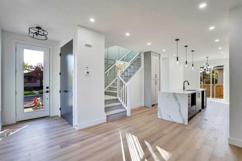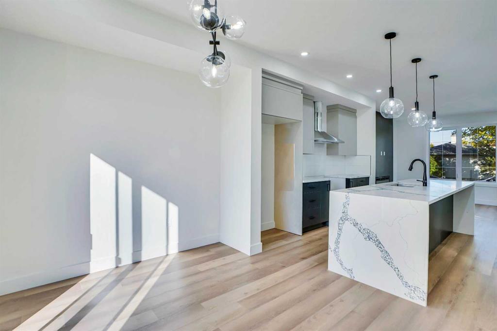 Welcome to your dream home in the amazing neighborhood of Capitol Hill. This brand-new, premium south-facing corner unit townhouse blends modern elegance with everyday comfort. With over 1,800 Sq Ft of finished living space, you’ll enjoy open-concept design, high ceilings, and oversized windows that fill each room with natural light. The gourmet kitchen showcases quartz countertops, high-end appliances, and custom cabinetry – perfect for cooking and entertaining. Upstairs, the primary suite features a luxury ensuite and large windows with downtown views. The fully finished basement adds a recreation room with wet bar, spacious bedroom, and full bath. Just minutes from downtown, SAIT, U of C, Confederation Park, restaurants, and cafes, this home delivers the ultimate urban lifestyle in a quiet residential setting.