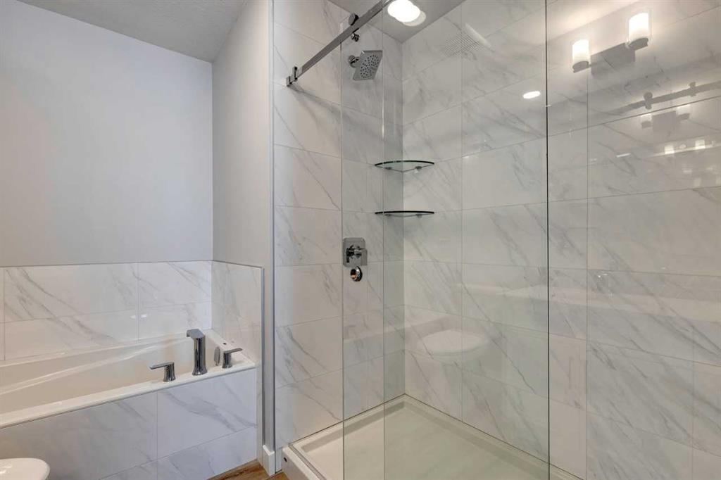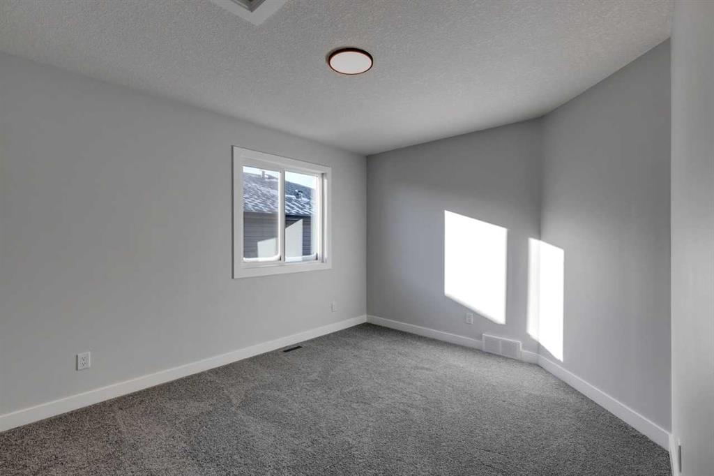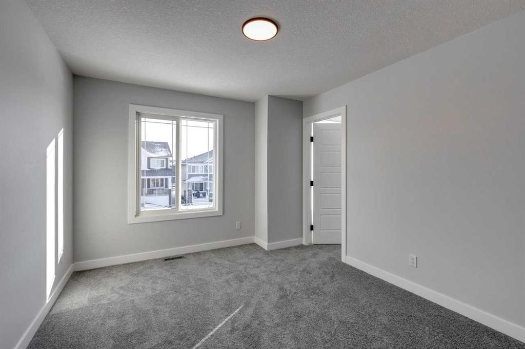 This home features a sleek kitchen with stainless steel appliances, chimney hood fan, pendant lighting, and a walk-in pantry with French door. A main floor bedroom and full bath offer added flexibility for guests or work-from-home needs. The great room includes an electric fireplace with mantle and extra windows throughout for natural light. Upstairs, enjoy a vaulted ceiling in the bonus room and a spacious 5-piece ensuite. Tile flooring is included in all bathrooms. Situated on a pie-shaped lot with a southeast-facing backyard and a rear deck. Finished with paint-grade railings and iron spindles for a modern, elegant touch. This energy-efficient home is Built Green certified and includes triple-pane windows, a high-efficiency furnace, and a solar chase for a solar-ready setup. With blower door testing plus an electric car charger rough-in, it’s designed for sustainable, future-forward living.