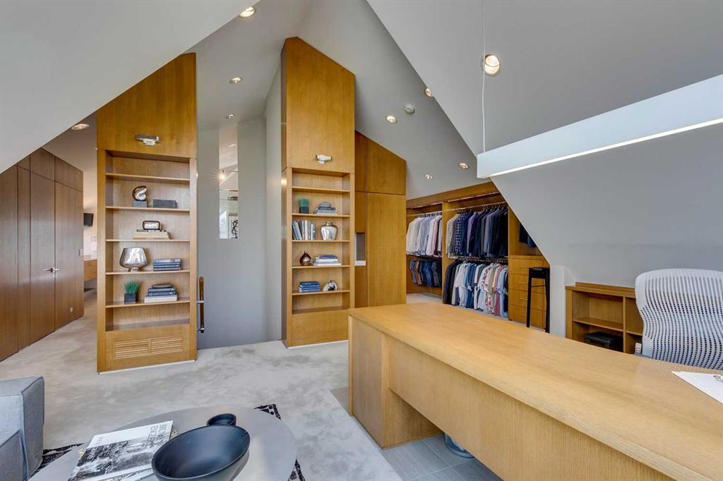 This home which was completely transformed in 2013 with modern scale + design of windows + sight lines + the creation of two gorgeous outdoor living spaces both at the front + back of the property. Impressive curb appeal is welcoming with the house set back from the street . Enter to a warm living room/dining room combination with loads of windows + stunning Cypress wood ceiling. The back of the house is set up from comfortable informal living with a huge chef’s kitchen with ample storage, professional appliances, amazing pantry, large island + informal dining. The great room is right off the kitchen with ribbon gas fireplace. The entire back of the house is stunning floor to ceiling windows over looking the south facing garden + outdoor living space. On the second level there are two comfortable bedrooms + a very generous upper lounge. Laundry is also on this level. A Primary retreat, like no other, is on the third level. This luxurious space with soaring ceilings + city views consists of a built in office, lounge, sleeping quarters + spa ensuite bath as well as an substantial sized closet system. Media room, flex room, a wine cellar, mudroom + extra storage are located in the lower level which also has access to the under drive double attached garage. Amazing outdoor spaces with fountains, fireplace, + mature landscaping offers a great space for summer entertaining + room for kids to play. The quality of this home is clear with top of the line materials, a generous amount of wood, gorgeous stone + more. A must to view!