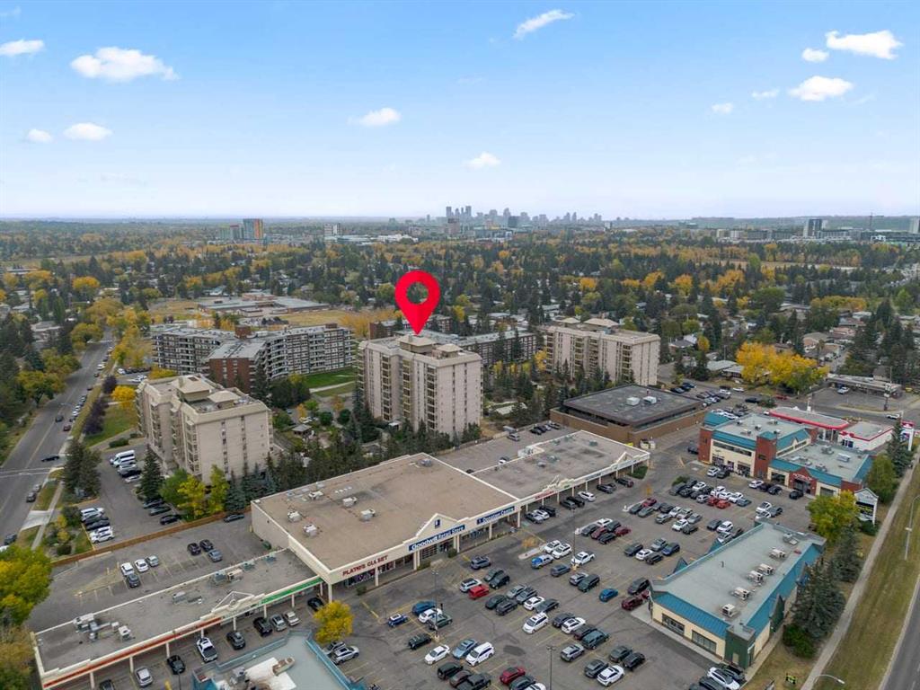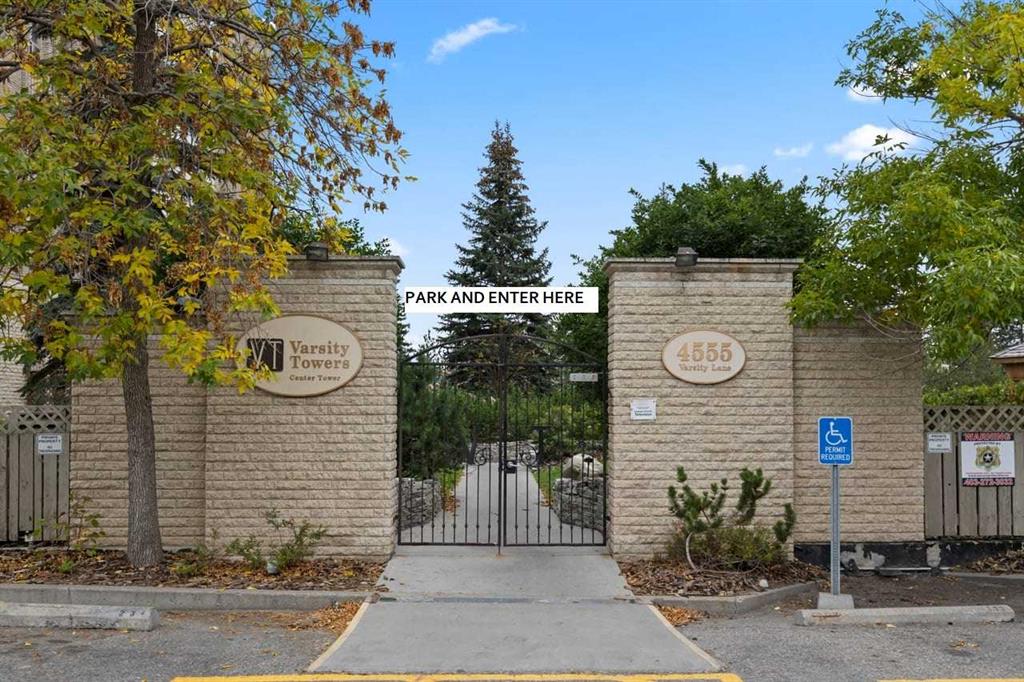 Gaze at sweeping garden and city views from this bright southwest corner unit with extra windows that flood the space with natural light, featuring a spacious layout with two large bedrooms, in-suite laundry, maple cabinets, built-in bookshelves, granite counters, tile backsplash, and modern décor, while a cozy gas fireplace creates the perfect focal point for relaxation and entertaining; included is secure underground parking and residents of Varsity Towers enjoy an unmatched lifestyle with access to an indoor pool, hot tub, steam room, fully equipped fitness centre, party lounge with games and big screen, business centre, library, car wash bay, lush landscaped gardens with BBQ areas, rooftop patios, courtyards, putting green, and greenhouse, all overseen by an on-site building manager providing peace of mind and exceptional service, plus a prime location close to schools, shopping, and dining makes this home the ultimate in urban convenience, and with flooring and paint updates needed it is priced perfectly for you to customize and make it your own. This complex is Pet Friendly and Bicycle storage also available. Condo fee not only covers all the features mentioned above, it also includes ELECTRICTY, WATER & HEAT common area maintenance and much more. Varsity Towers is located near Market Mall, U of C, Foothills Hospital, the Children's Hospital, and the New University District, with shops, restaurants, and major roadways nearby. This is a great condo, in a very nice complex, in a desirable part of the city.