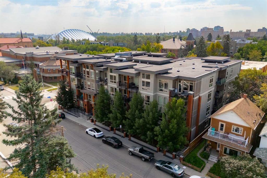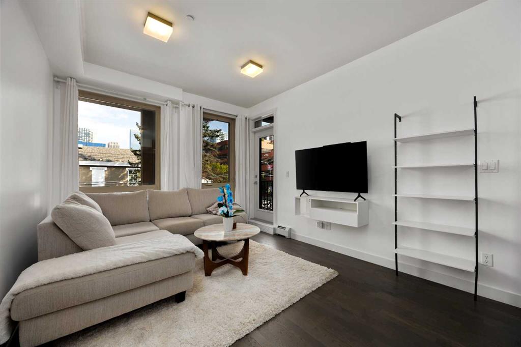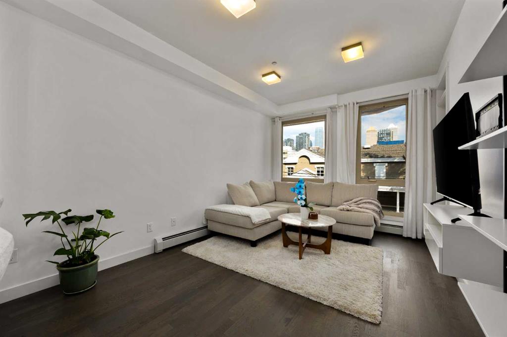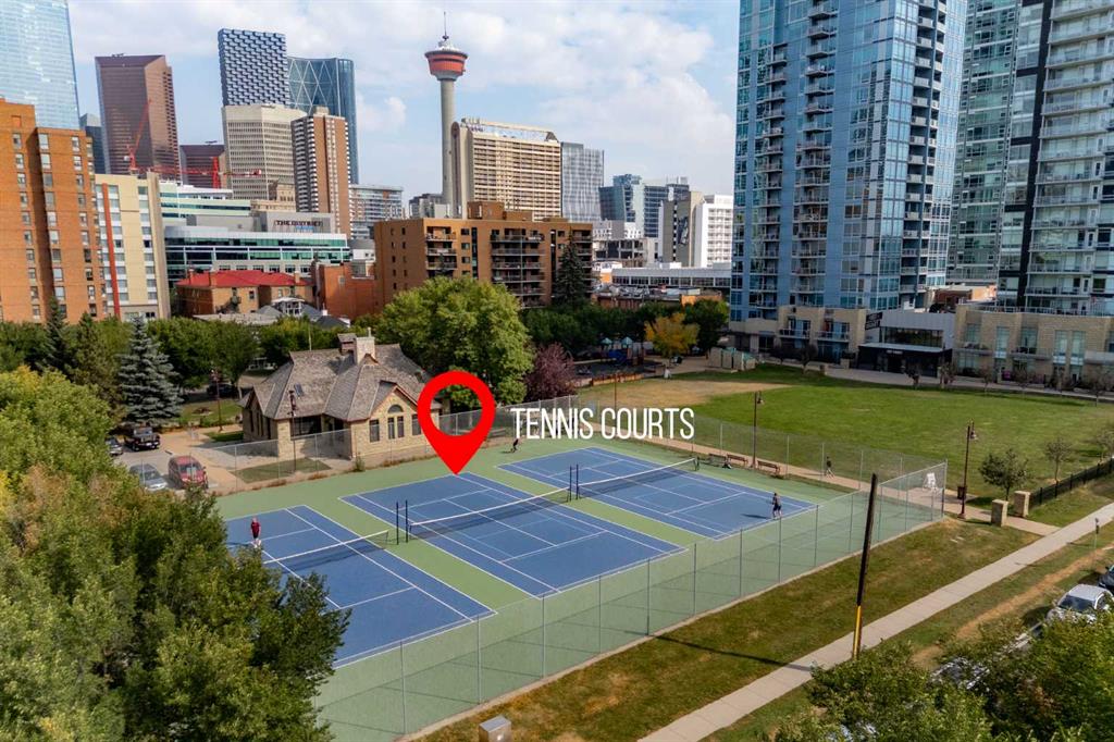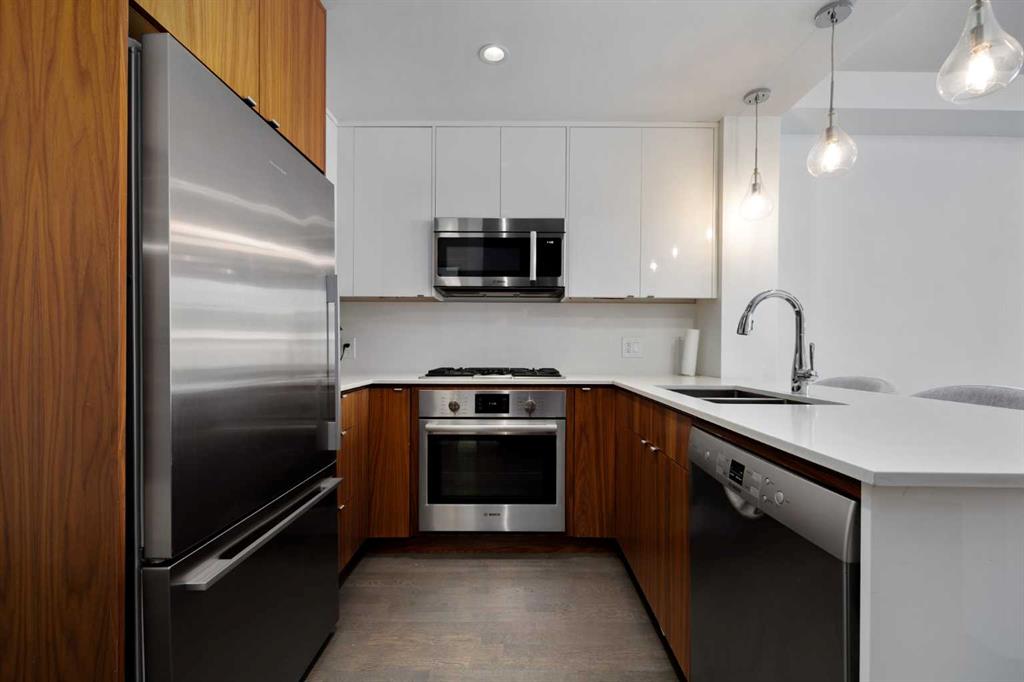 Mission offers a true walk everywhere lifestyle with 4th Street dining, boutique shops, river pathways, and the best of Calgary living just steps from downtown, parks, and endless amenities. Living at The District delivers it all. This well designed 2015 north facing 1 bedroom, 1 bathroom condo includes TITLED underground parking, assigned storage, and a spacious balcony. The open concept layout features large windows, 9 ft ceilings in the living, and a chic kitchen with sleek two tone cabinetry, quartz countertops, a peninsula with seating for three, gas cooktop, full stainless appliance package, and pendant lighting. Just off the kitchen is a thoughtfully designed built in office space. The living room is filled with natural light and city views, while the spacious bedroom connects to a walk through closet and spa inspired bathroom with a soaker tub and tiled shower. Added conveniences include in suite laundry with extra storage, and a balcony with gas hookup for summer evenings. Check out the virtual tour and book your showing today to see why this home stands out.