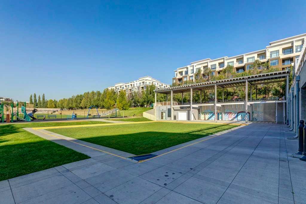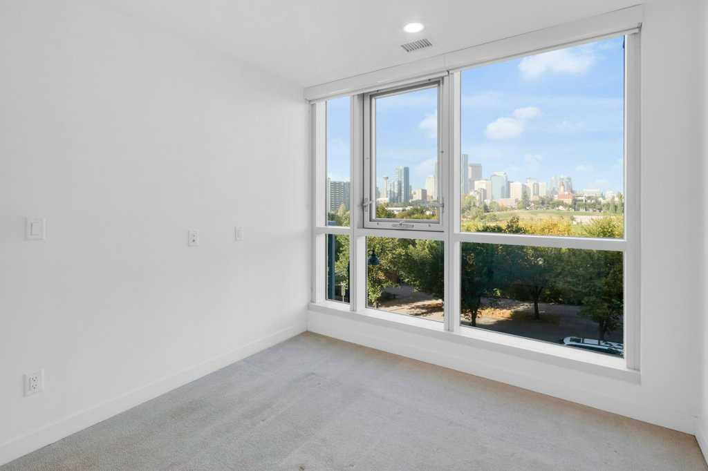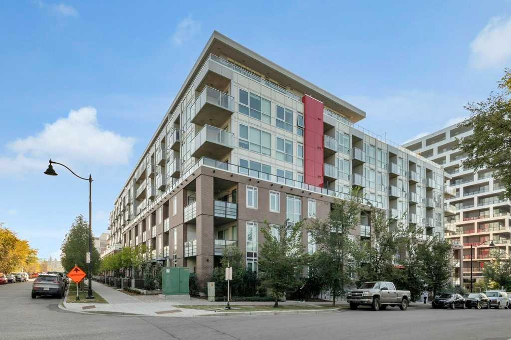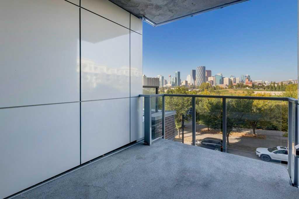 Welcome to Radius in Bridgeland, a modern, trendy, concrete, pet-friendly building! This west-facing 2 bedroom, 2 bathroom condo offers 634 sq ft of modern living space and features an unobstructed view of Murdock Park across the street and downtown view! Thoughtfully designed condo with open-concept living. The kitchen features modern cabinetry, quartz countertops, breakfast bar seating and sleek premium stainless steel appliances including a gas cooktop. Private balcony facing Murdoch Park with BBQ gas hook-up Bright, west-facing primary bedroom with ensuite bathroom, and 2nd bedroom with it's own bathroom across the hall. Vinyl plank flooring through main living space and 2nd bedroom, carpeted primary bedroom, and tiled bathroom floors. In-suite laundry, underground titled parking stall and an assigned storage locker included. Radius is a LEED Platinum–certified, concrete building built by Bucci withs many amenities including daytime concierge, several fitness facilities including 2 gyms, bike studio, & yoga studio, massive rooftop patio with gardens and modern furniture, bike storage room, bike workshop, dog wash & grooming area, and car wash. Steps to parks, pathways, shops, transit and all that Bridgeland has to offer, this is the perfect blend of inner-city living and trendy living space. Very well run stylish building in a great urban location check this one out! Up to 2 pets allowed with no size restriction!