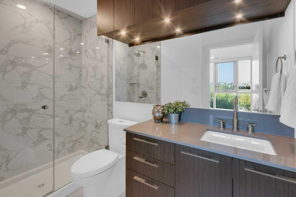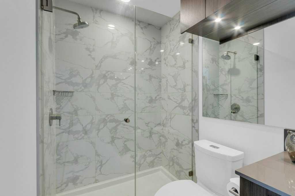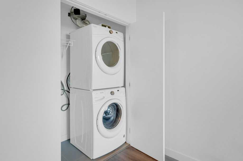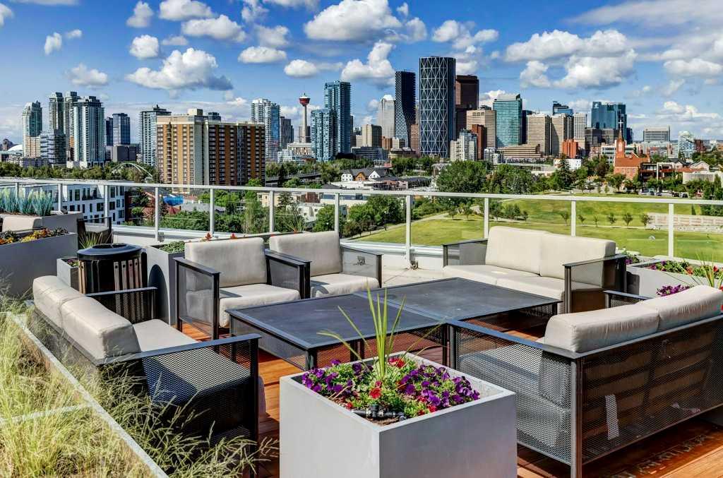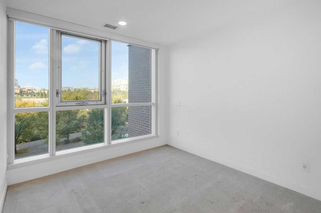 Welcome to Radius in Bridgeland, a modern, trendy, concrete, pet-friendly building! This west-facing 2 bedroom, 2 bathroom condo offers 634 sq ft of modern living space and features an unobstructed view of Murdock Park across the street and downtown view! Thoughtfully designed condo with open-concept living. The kitchen features modern cabinetry, quartz countertops, breakfast bar seating and sleek premium stainless steel appliances including a gas cooktop. Private balcony facing Murdoch Park with BBQ gas hook-up Bright, west-facing primary bedroom with ensuite bathroom, and 2nd bedroom with it's own bathroom across the hall. Vinyl plank flooring through main living space and 2nd bedroom, carpeted primary bedroom, and tiled bathroom floors. In-suite laundry, underground titled parking stall and an assigned storage locker included. Radius is a LEED Platinum–certified, concrete building built by Bucci withs many amenities including daytime concierge, several fitness facilities including 2 gyms, bike studio, & yoga studio, massive rooftop patio with gardens and modern furniture, bike storage room, bike workshop, dog wash & grooming area, and car wash. Steps to parks, pathways, shops, transit and all that Bridgeland has to offer, this is the perfect blend of inner-city living and trendy living space. Very well run stylish building in a great urban location check this one out! Up to 2 pets allowed with no size restriction!