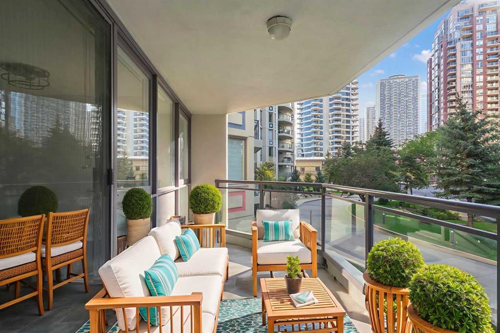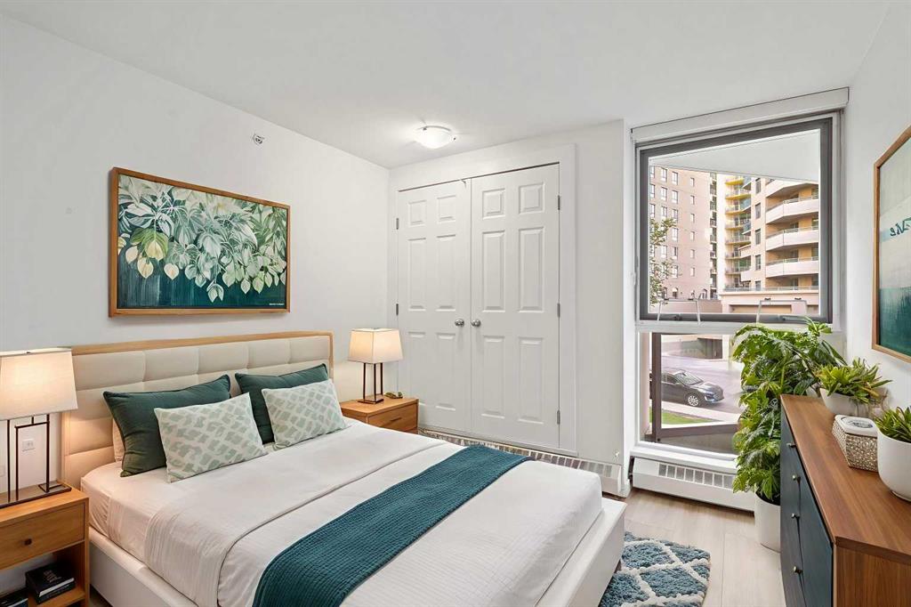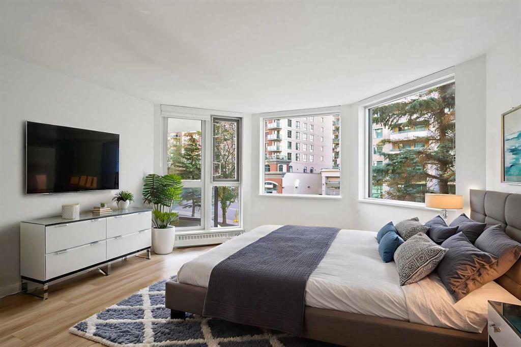 Ideally located in the quiet west end of downtown, this renovated 2-bedroom, 2-bathroom unit in The Marquis offers nearly 1,000 sq ft of bright, open-concept living space. Just steps from the Bow River pathways and only 2 minutes to the C-Train (within the free fare zone). Features include granite countertops, new stainless steel appliances, vinyl plank flooring, a gas fireplace, and a south-facing, tree-lined balcony. The oversized primary bedroom includes a full ensuite and direct balcony access. The second bedroom is situated near the second full bathroom, ideal for guests or roommates. Additional conveniences include quick stair access (bypassing elevator wait times) and close proximity to the titled underground parking stall. Building amenities include a fitness center, yoga studio, party room, landscaped courtyard, secure bike storage, and visitor parking. Pet-friendly building (with board approval; under 20 lbs). Walkable location close to Kensington, river trails, cafes, restaurants, and downtown amenities.