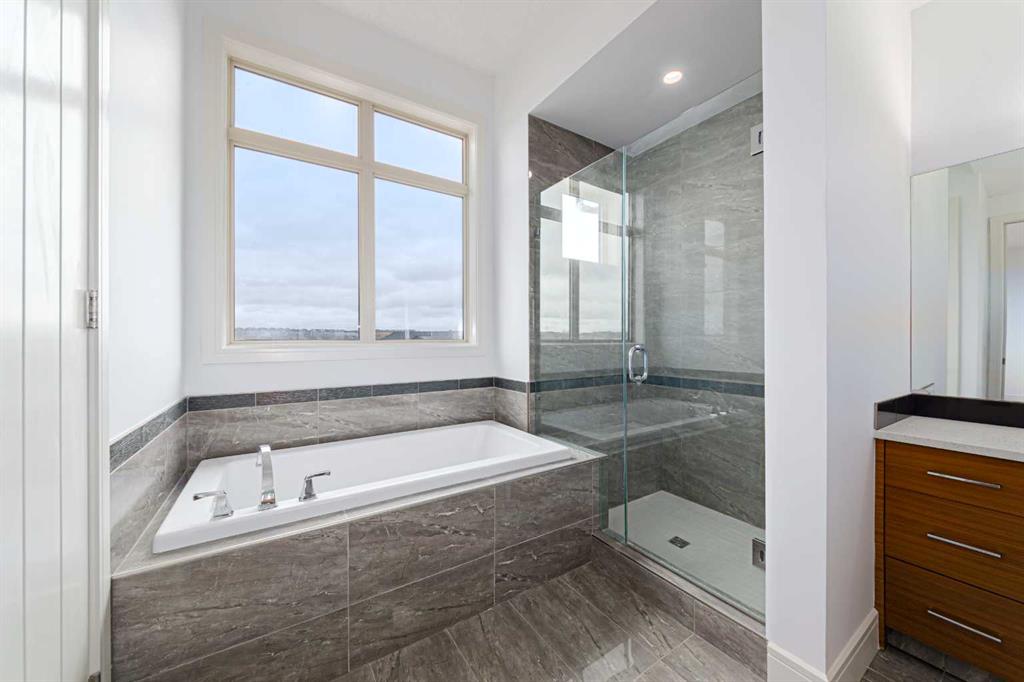 The upper level is perfect for family living, featuring a large bonus room with large window that brings in lots of natural light, the Master Bedroom is a retreat itself, beckons with a spacious layout, large walk-in closet, and plush carpeting underfoot. The 5-piece ensuite Bathroom features a Sink with quartz Countertops, a Large Mirror, toilet, beautiful tiles throughout the Floor, around the Soaker Tub, and the large Stand-Up Shower, providing a private retreat for homeowners. 2 other Large Bedrooms with carpet Flooring and closets, a 5-piece Bathroom, Laundry room with sink and drawers for convenience,