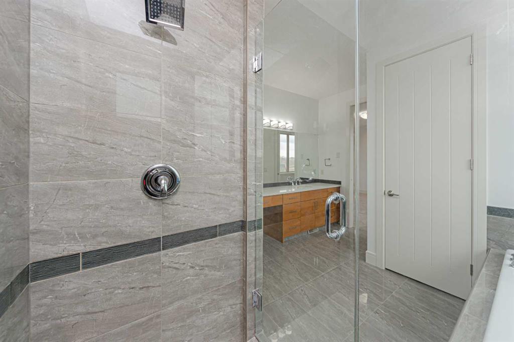 Downstairs boasts a developed walkout to grade basement with a good-sized bedroom and beautiful finishes like plush carpet Flooring, a beautiful living room with another inviting fireplace, a Rec Room, Utility Room. The very exquisite 4-piece Bathroom completes this basement with a large mirror, Sink with quartz Counter tops, beautiful Tiles on the floor and a bathtub.