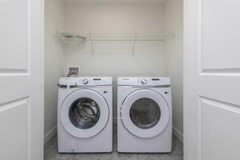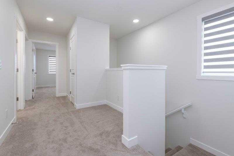 The open-concept main floor is perfect for entertaining, with large windows that flood the space with natural light and a kitchen featuring bright white cabinets that make the room feel fresh and airy. Elegant finishes such as quartz countertops and 9-foot ceilings add a modern, upscale touch, while the convenience of second-floor laundry enhances everyday living.