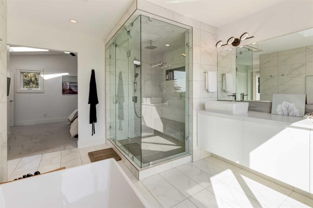 The house with the yellow door… we know you’ve been wondering about this one. Don’t miss the incredible chance to own this modern beauty in the community of Highwood. Set on an extra-wide lot and offering over 2,900 square feet spanning 3 levels and developed basement, the home is thoughtfully designed to maximize light and space. Featuring clean linear lines, neutral tones, and expansive windows that create a calm, airy ambiance, the home features a floor plan that flows effortlessly with sleek finishes, tall ceilings and two dramatic open-to-below spaces illuminated by four skylights. The kitchen showcases understated elegance with functional luxury in the form of stainless steel appliances, gas range, custom soft-close Italian cabinetry and sparkling white quartz countertops with waterfall island. The living space showcases a unique BioFlame fireplace and leads to a 600 square foot deck and professionally landscaped west facing backyard. Upstairs on the second floor, there are 3 bedrooms, one offering a private ensuite complete with heated floors. The abundance of custom built-ins ensures seamless organization. The 3rd floor primary suite feels like a serene spa retreat. The ensuite features in-floor heat, oversized shower, and neutral finishes. The private balcony overlooks downtown views — perfect for watching fireworks in quiet comfort. The legal 1-bedroom/bathroom basement suite is equally refined, featuring a completely separated side entrance, a custom Italian kitchen, radiant floor heating, floating insulated main floor for soundproofing, oversized shower and spacious closet/storage. With current tenants keen to stay, it’s an effortless income generator or multi-generational space. Additional highlights include oversized 22’ x 24’ insulated garage with 220V EV charging, custom window coverings and USB outlets throughout, high efficiency furnace & hot water tank, roughed-in A/C, and prime east-facing front on a quiet cul-de-sac across from a lush park. Surrounded by mature trees and top-rated schools (Mandarin, Spanish, French, Catholic, Public, and Foundations for the Future), Highwood is a hidden gem ~ a family-friendly community that grows with you. Confederation Park, outdoor rinks, golf courses, pools, and playgrounds are all nearby, while downtown, SAIT, U of C, and Kensington are just minutes away. With bike paths, major bus routes, and the future Green Line LRT station within walking distance, convenience meets tranquility. A rare opportunity to own a home where peaceful minimalism, design sophistication, and inner-city living intersect.