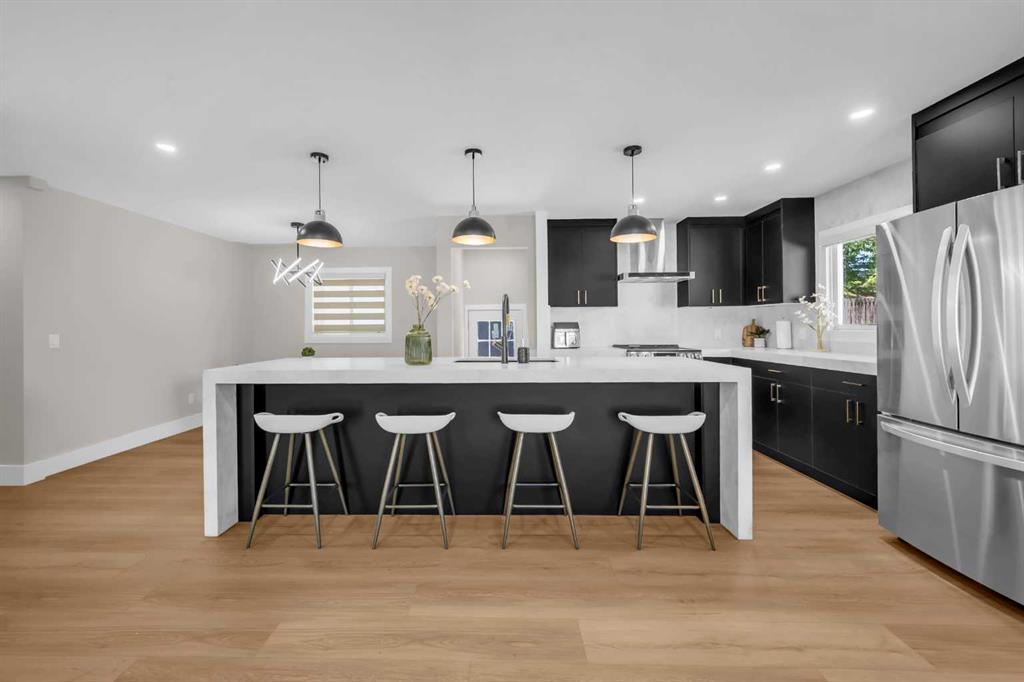 Welcome to your dream home! This gorgeous bungalow has been completely transformed, stripped down to the studs and rebuilt with love and care. Every inch of this place feels fresh and modern, with brand-new wiring, plumbing, and a powerful air conditioning system to keep you cool year-round. It has 5 spacious bedrooms and 5 stunning bathrooms, 3 of which are ensuites with sleek LED mirrors featuring defrosters for a touch of luxury. Two of the bedrooms boast roomy walk-in closets, perfect for all your storage needs. Step inside, and you’ll fall in love with the open, airy vibe. The living and dining areas flow together seamlessly, making it easy to host game nights, dinner parties, or just relax with your family. The kitchen is a total showstopper, complete with custom countertops, under-glow cabinetry for that extra wow factor, top-notch appliances, and plenty of space for whipping up your favorite meals or baking with the kids. Need a spot for entertaining? The built-in wet bar in the basement is ready for cocktail nights or cozy gatherings. Every detail in this home has been thoughtfully upgraded, from gorgeous flooring and stylish fixtures to modern finishes that make it feel warm and welcoming. Outside, the low-maintenance backyard is a true oasis, beautifully landscaped to give off resort-like vibes, complete with a relaxing hot tub for soaking under the stars. The exterior house LED lighting adds a chic, modern glow, highlighting the home’s stunning curb appeal. Plus, there’s a garage with a rooftop patio that’s perfect for summer BBQs or quiet evenings taking in the views. Nestled in a fantastic neighborhood, you’re just minutes away from great shops, tasty restaurants, peaceful parks, and top-rated schools. This home has it all: space, style, and a location that makes life easy and fun. Whether you’re growing a family or just want room to spread out, this bungalow is ready to be your home sweet home. Come see it for yourself; you won’t want to leave!