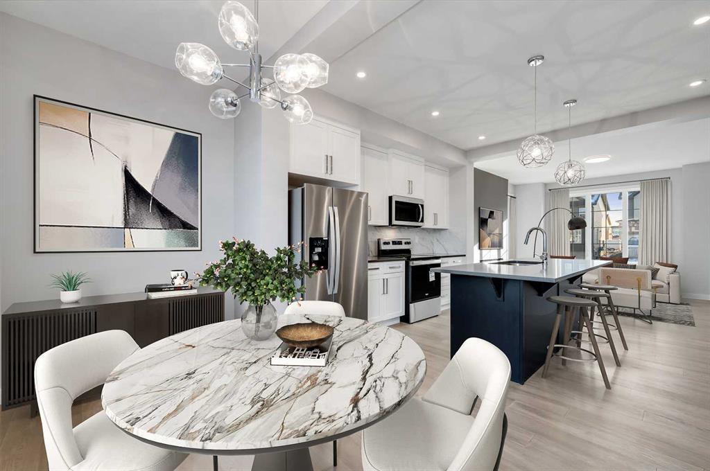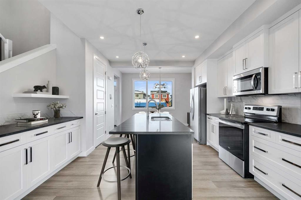 Meet the Winslow, Built by Master Builder Douglas Homes! Nestled in the highly sought-after community of Crimson Ridge, this stunning new build offers the perfect blend of luxury, comfort, and nature. Backing onto scenic walking paths and the prestigious Lynx Ridge Golf Course, this home provides breathtaking views and an unparalleled sense of tranquility. Spanning over 2,000 sq. ft., this open-concept design is crafted with quality finishings and modern elegance. Hardwood floors flow seamlessly throughout the main level, leading to a great room with a cozy fireplace, an inviting dinette, and a chef-inspired kitchen featuring a 10' island, quartz countertops, stylish cabinetry, and five stainless steel appliances, including a gas stove. The main floor flex room is ideal as an office or den—offers additional versatility. Step outside to enjoy the expansive 20’ x 10’ covered patio - perfect for entertaining or unwinding in nature. Upstairs, the home continues to impress with three spacious bedrooms, a loft-style bonus room, and a dedicated laundry room. The primary suite is a true retreat, featuring a luxurious 5-piece ensuite with a soaker tub, separate shower, double vanities, and a generous walk-in closet. The fully finished basement extends the living space with a recreational room, an additional bedroom, and a full bathroom, making it perfect for guests or family gatherings. 9 ft. ceilings, on main and lower level and quality craftsmanship throughout, this home is both sophisticated and functional. Surrounded by nature and minutes from amenities, this is a rare opportunity to own a Douglas Home in one of the most desirable location