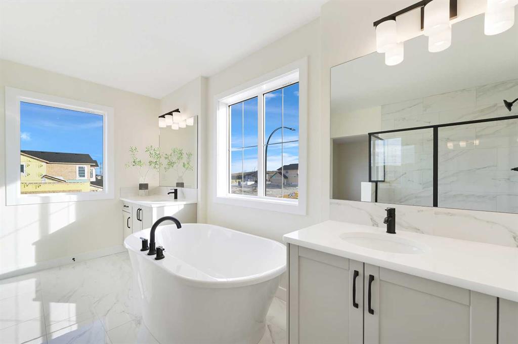 Upstairs, discover three generous bedrooms, a versatile loft-style bonus room, and a convenient laundry area. The luxurious primary suite is your private escape, complete with a spa-like 5-piece ensuite featuring a deep soaker tub, stand alone shower, dual vanities, and a large walk-in closet.