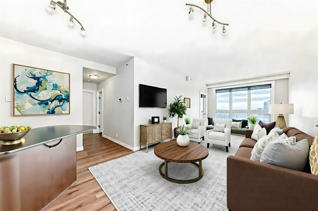 Welcome to London at Heritage Station, where urban convenience meets modern comfort! This beautifully renovated 2-bedroom, 2-bathroom Dover unit offers over 975+ sq. ft. of stylish living space and is completely move-in ready with brand-new Luxury Vinyl Plank flooring, fresh paint, and professional cleaning. The open-concept design is filled with natural light, thanks to the energy-efficient, oversized windows, while the large private balcony provides breathtaking, unobstructed mountain views with sunny south exposure—a perfect spot to unwind. The modern kitchen is both functional and elegant, featuring sleek granite countertops, rich dark maple cabinets, a full-height tile backsplash, and a cozy breakfast bar—ideal for entertaining. The spacious primary suite offers a luxurious 4-piece ensuite, while the second bedroom is perfect for guests, a home office, or additional living space. Convenience is key with in-suite laundry featuring a stacked washer/dryer. Residents enjoy top-tier amenities, including heated underground parking, 24/7 security, concierge service, and a rooftop sunroom and patio. Located in an unbeatable location, this condo provides direct access to Heritage C-Train Station via a pedestrian bridge, making commuting a breeze. Plus, with Save-On-Foods, Tim Hortons, restaurants, and other essential services just steps away, you have everything you need right at your doorstep. Don’t miss your chance to own this incredible unit—schedule your private showing today!