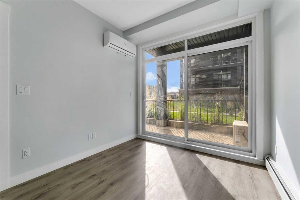 Your bedroom is a cozy retreat with a large window offering abundant daylight, a walk-in closet, and convenient access to the full bathroom with a Jack & Jill door. Additional highlights include in-suite laundry, central air conditioning for year-round comfort, and a titled parking stall for your convenience.