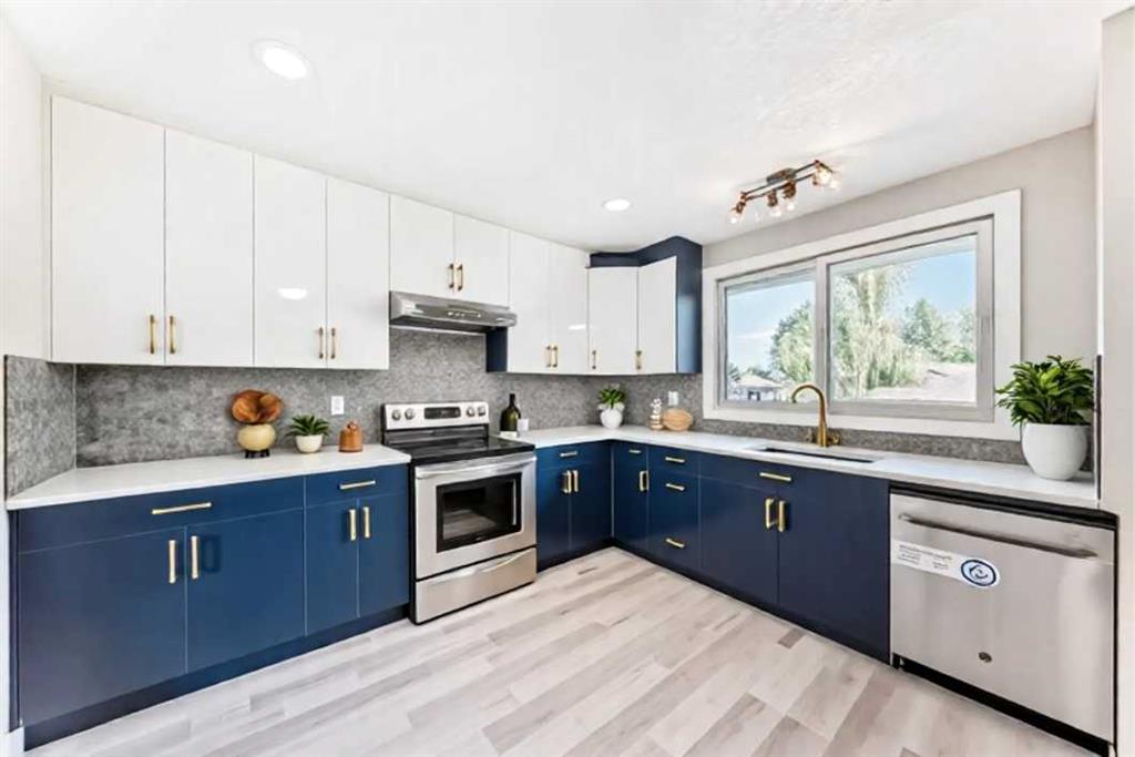 PRICE REDUCED 30K! Fantastic Opportunity to get into a move in ready RENOVATED Lake community home!!! Welcome to this beautifully renovated 5-bedroom, 2-bathroom home in the desirable lake community of Midnapore in Calgary’s southeast. Featuring over 1,950 sq ft of finished living space across four levels, this move-in-ready gem offers the perfect blend of style, space, and location. Step inside to find a bright main floor with luxury vinyl plank flooring, modern lighting, and a spacious living room that opens into a show-stopping kitchen. The kitchen boasts high-gloss white upper cabinets, royal blue matte lower cabinets, soft-close drawers, quartz countertops, a tiled backsplash, new stainless steel appliances, a decorative bistro bar, and custom pantry storage leading to the backyard. Upstairs, you’ll find three bedrooms including a spacious primary suite with a custom walk-in closet and a fully renovated 4-piece spa-style bathroom. The third level offers a huge family room with an electric fireplace feature wall and built-in entertainment space, a large fourth bedroom with a walk-in closet, and a 3-piece jack-and-jill bathroom. The lower level includes a fifth bedroom with egress window and walk-in closet, plus a large utility/laundry room with a brand new washer and dryer, high-efficiency Goodman furnace, and water tank. Upgrades include new triple-pane windows throughout, a new roof, eaves, gutters, fresh exterior and interior paint, new front and back doors, and updated plumbing. Enjoy the newly landscaped front yard, two-tiered rear deck, new fencing, and a double detached garage currently under construction. Located on a quiet street, just steps to Fish Creek Park, schools, shopping, LRT, and with full lake privileges at Midnapore Lake, this is more than a home — it’s a turnkey lifestyle in one of Calgary’s best established communities.