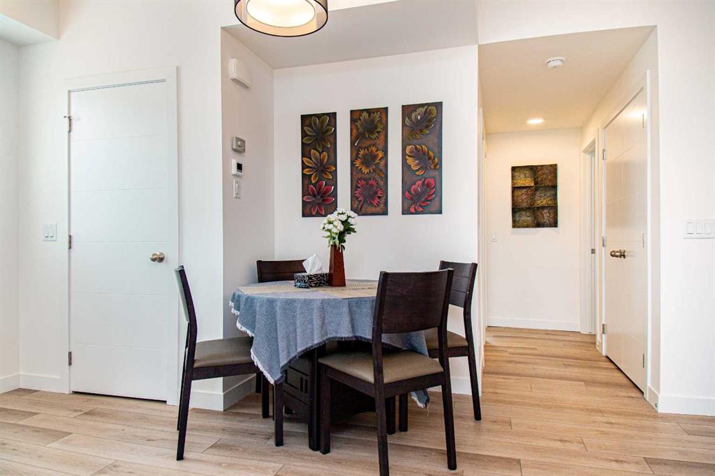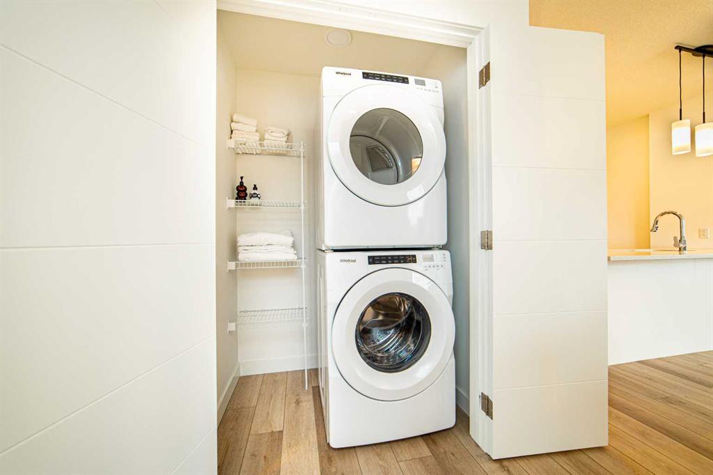 Welcome to functional urban living in the heart of Springbank Hill! This beautiful 2-bed, 2-bath end-unit stacked townhouse with a single attached garage offers over 1000 sq ft of stylish, low-maintenance living in one of Calgary’s most desirable communities. The home features a spacious front patio with A/C rough-in, an open-concept layout with large windows and vinyl plank flooring throughout, and numerous upgrades including quartz countertops, shaker cabinets with modern hardware, upgraded lighting, backsplash, sink, door hardware, and refrigerator. The primary suite includes a 4-piece ensuite, and a large closet, while the bright living room opens to a large private balcony with glass walls—perfect for relaxing or entertaining. Enjoy unbeatable convenience with low condo fees, a retail plaza within the complex, Aspen Landing Shopping Centre just across the street, and top schools like Webber Academy, Calgary Academy, and Rundle College minutes away. With easy access to 85 St SW, 17 Ave SW, Stoney Trail, and the 69 Street LRT station only 2 minutes away, this move-in-ready home is ideal for families, young professionals, or investors—don’t miss your chance to own in Springbank Hill!