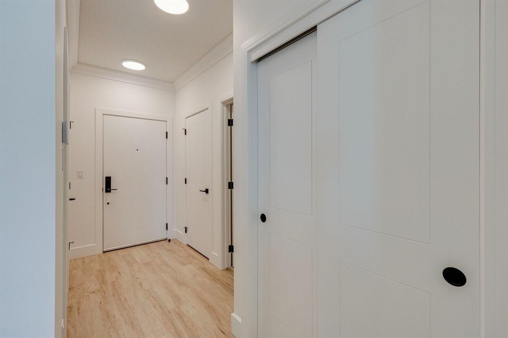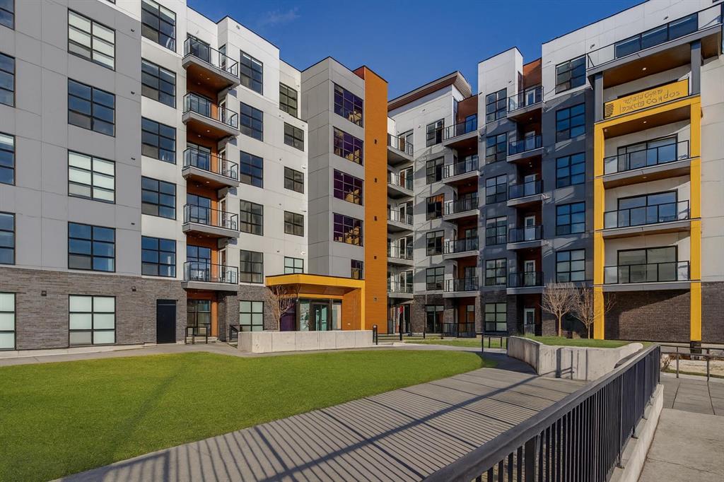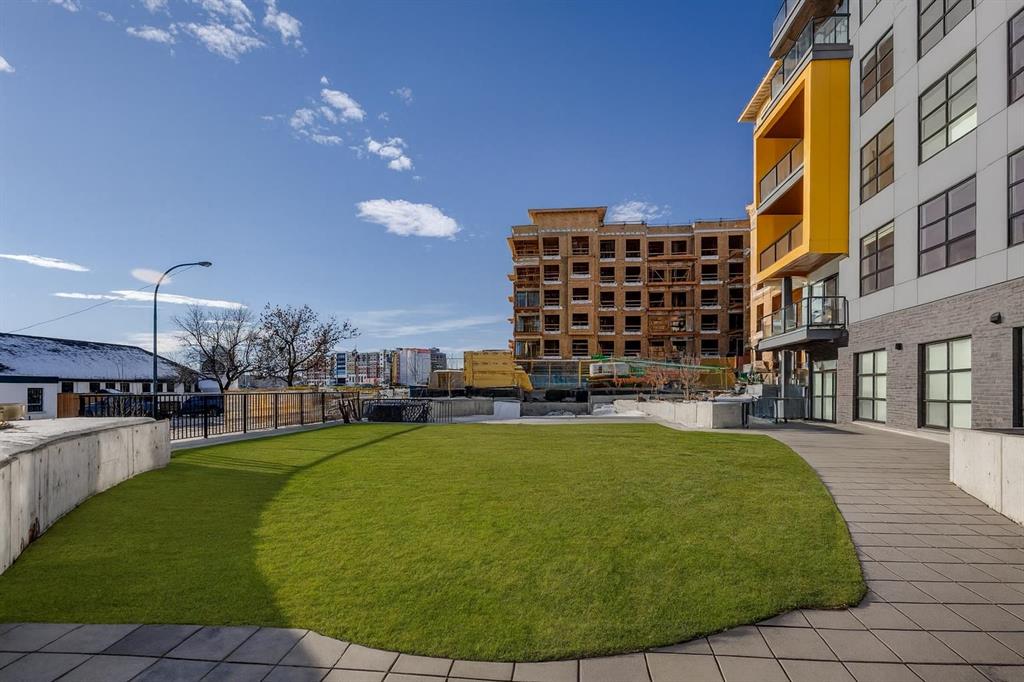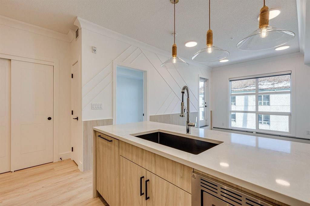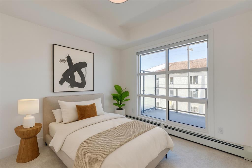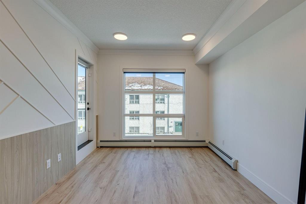 Welcome to an exquisite 1-bedroom plus den condo in the sought-after community of Currie Barracks, where classic design meets modern comfort. Situated on the second floor of a quiet, upscale building, this home features a warm, airy color palette, thoughtfully curated finishes, and an inviting atmosphere perfect for professionals or anyone seeking refined, low-maintenance living.