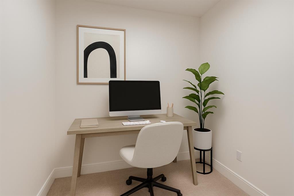 A good-sized den or office space provides flexibility for working from home, reading, or hosting overnight guests.