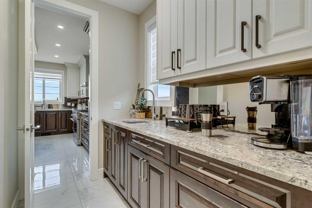 Luxury Living BACKING ONTO A POND!! Over 4,000 Sq. Ft. of elegance. Experience refined living in this stunning CUSTOM-BUILT two-storey WALKOUT, offering more than 4,000 sq. ft. of beautifully finished space. Perfectly positioned on a landscaped lot backing onto a serene pond and future walking path, this home blends timeless elegance, modern convenience, and everyday comfort. From the moment you step inside the grand foyer, the attention to detail is undeniable. Soaring 9-foot ceilings, rich ENGINEERED HARDWOOD, and exquisite wainscoting create a warm yet sophisticated welcome. A sun-filled front office with oversized windows provides the perfect setting for work or study. At the heart of the home lies the GOURMET KITCHEN, a true chef’s dream with premium STAINLESS STEEL appliances, including a 6-burner GAS RANGE, built-in wall oven, and microwave. Full-height soft-close cabinetry, QUARTZ countertops, a stone backsplash, and a massive centre island elevate the space, while the DEDICATED COFFEE BAR with sink and expansive walkthrough pantry add both style and function. The elegant dining area easily seats eight or more, flowing seamlessly into the inviting living room, where a STRIKING GAS FIREPLACE is framed by floor-to-ceiling windows showcasing tranquil pond views. The main level is completed with a stylish powder room, spacious mudroom with custom lockers, and a functional walkthrough pantry that ties it all together. Upstairs, a HARDWOOD STAIRCASE leads to a cozy bonus room—ideal for family movie nights. The luxurious primary suite is a true retreat, featuring peaceful pond views, oversized windows, and a spa-inspired 5-piece ensuite with QUARTZ vanities, a corner soaker tub, tiled shower, dual sinks, and a custom walk-in closet. Two additional bedrooms complete this level—one with a private ensuite and walk-in closet, the other with access to a full bathroom. The fully developed WALKOUT BASEMENT offers exceptional versatility, with two more bedrooms, a large recreation area, flex space, and a full 4-piece bath—perfect for teens, guests, or extended family. Step out to your private backyard oasis, complete with a covered patio and lush landscaping, and soak in the views of the pond and green space beyond. Additional features include DUAL high-efficiency furnaces, TWO central A/C for both floors, and a spacious TRIPLE GARAGE, ensuring year-round comfort and convenience. This remarkable property truly has it all—style, space, and an unbeatable location. Don’t miss your chance to make it yours.