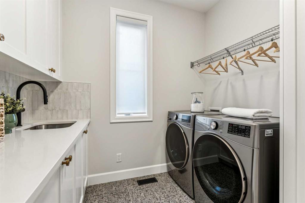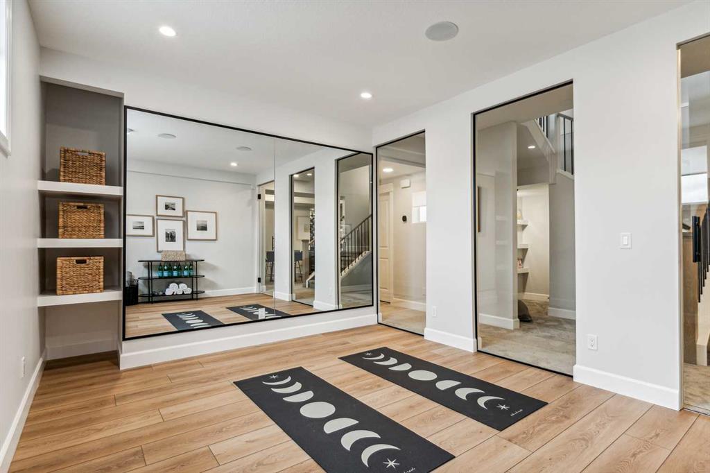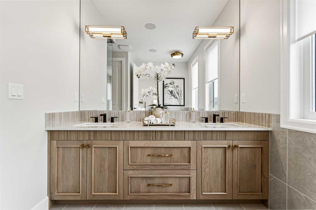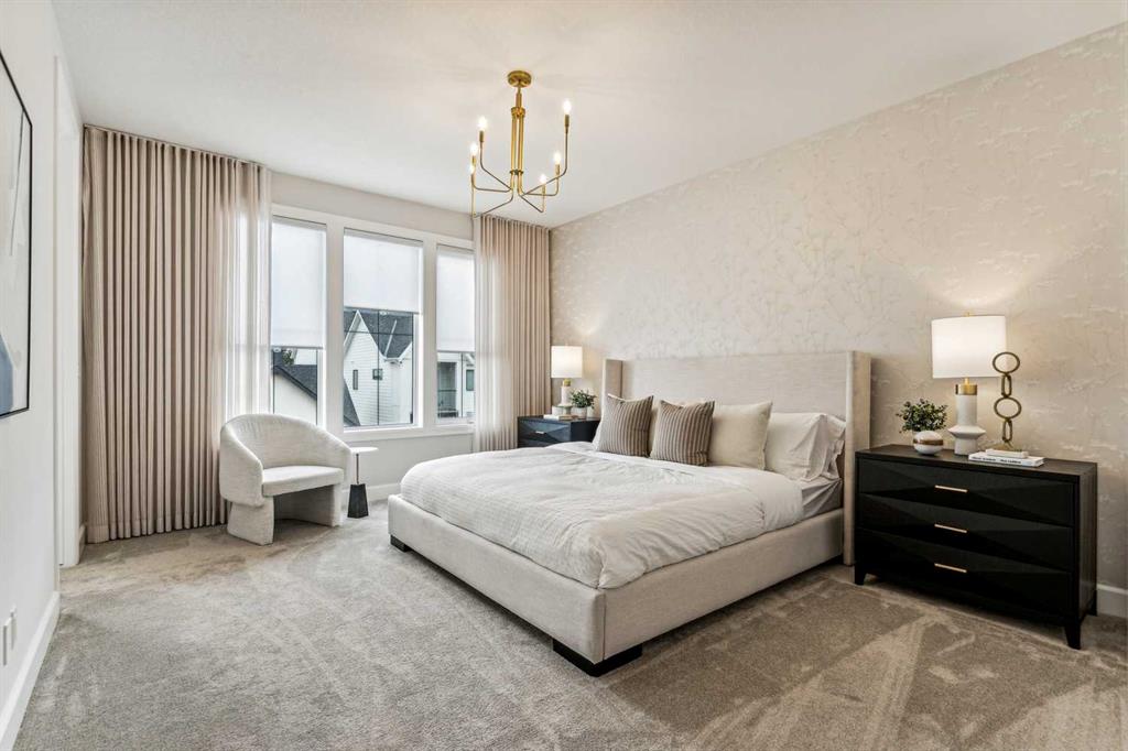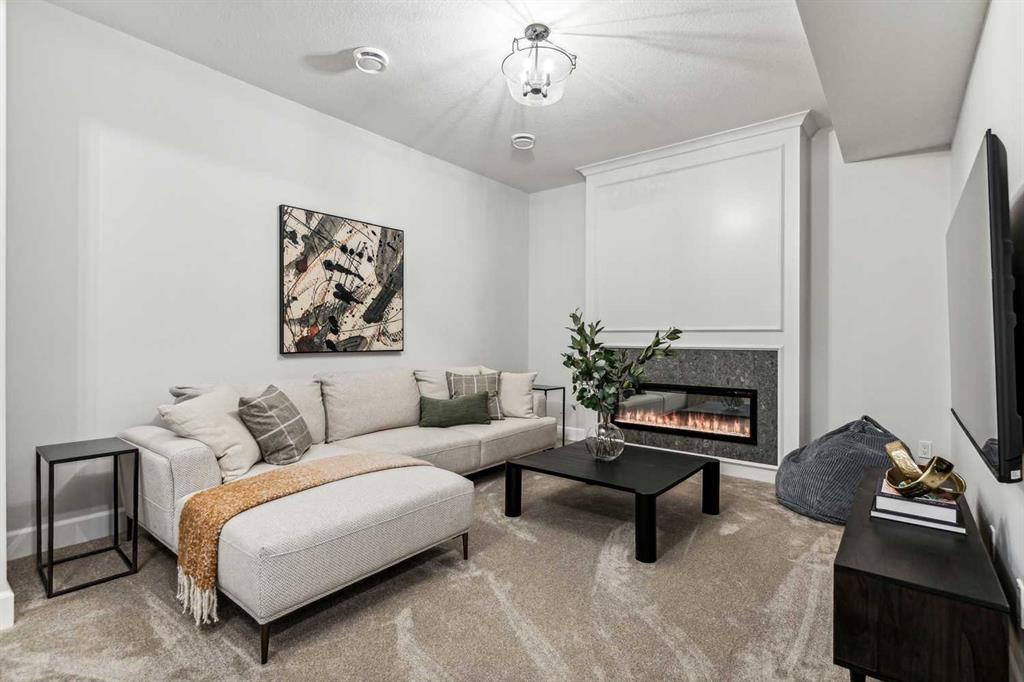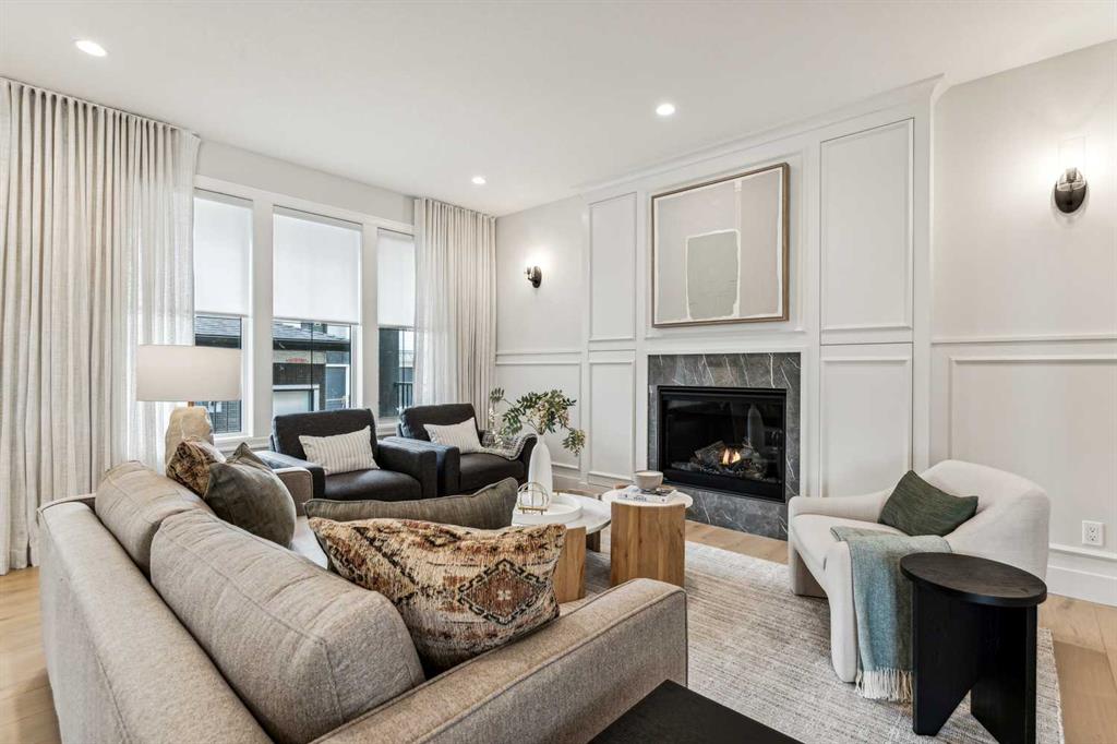 Welcome to this exquisitely crafted showhome by Homes By Us, where timeless design meets modern luxury. Located in the highly sought-after community of Currie Barracks, this home presents a rare opportunity to invest in both elevated living with a whole extra level which is ideal for multigenerational living, office space, or a private guest retreat. Inside, every detail has been thoughtfully curated. The gourmet kitchen is a chef’s dream, anchored by striking Dekton countertops and full-height backsplash, combining refined aesthetics with superior durability. The powder room exudes contemporary elegance with a bold apron sink and wall-mounted toilet, creating a sleek, minimalist look. Full height glass walls accent the den on the main floor as well as the fitness space in the basement, allowing natural light to flow while maintaining separation and style. Upstairs, you’ll find three generous sized bedrooms, including a sophisticated primary suite designed for relaxation and function. The fully developed basement expands your living options with an additional bedroom—perfect for guests or a home office. This home is complete with full landscaping and fencing, offering a private outdoor space without maintenance. Enjoy more time living in this vibrant area by stepping outside your door and into one of Calgary’s most walkable, park-filled communities. Whether it’s a stroll through nearby green spaces, a visit to local cafés, or a quick commute downtown, Currie offers urban living at its finest. This is more than just a home—it’s a lifestyle investment, combining architectural excellence, and everyday ease. Don’t miss your chance to make it yours! Please note this is a showhome, with regular showhome hours. Come by and visit Monday-Thursday 2PM-8PM or Sat/Sun Noon-5PM- Seller would consider taking trades.