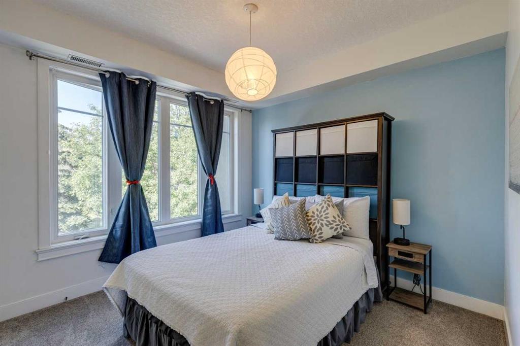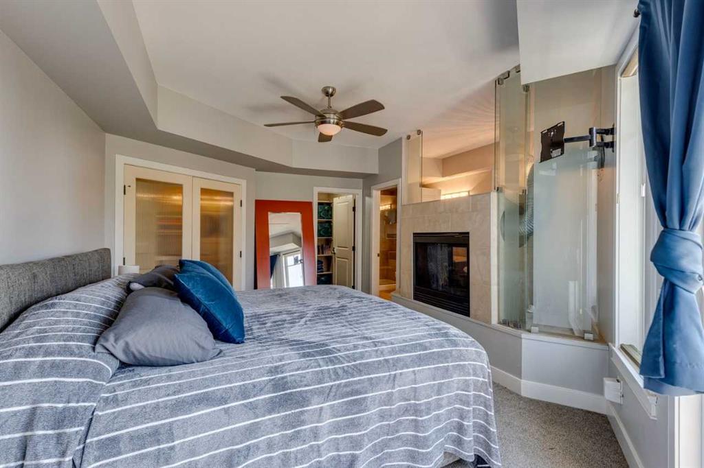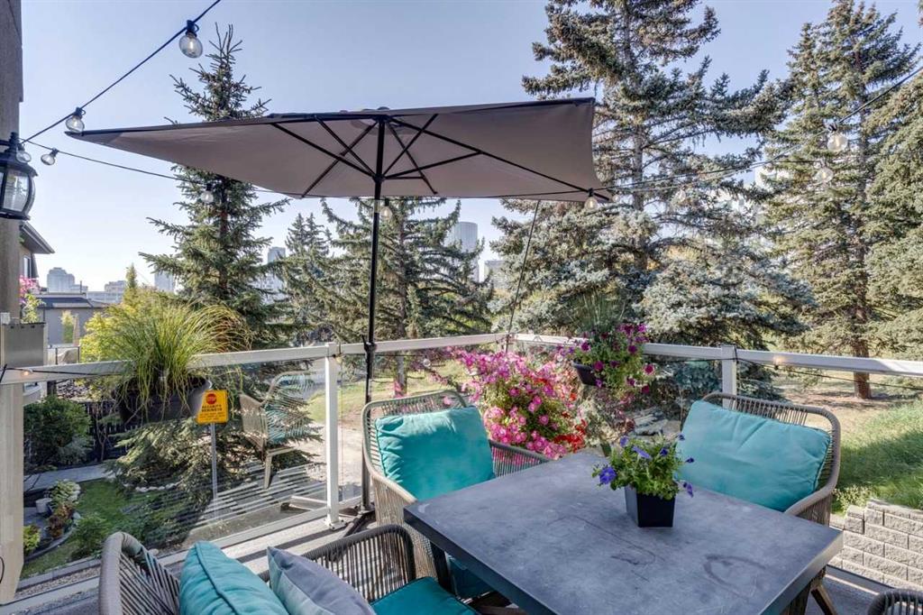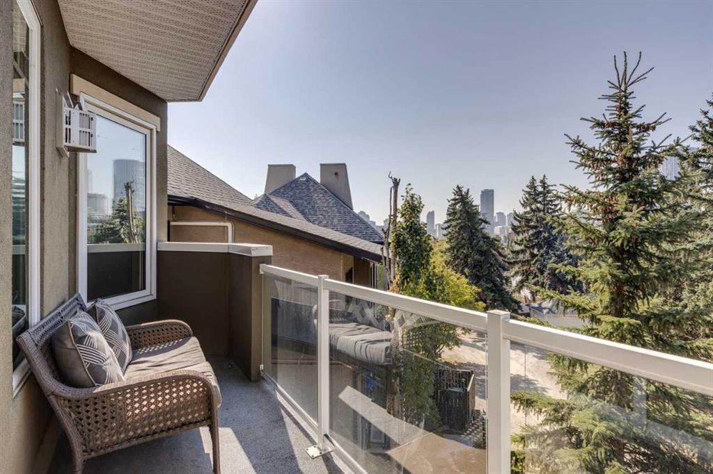 This stunning 2-storey townhome (1,491 sq. ft.) offers modern architecture, open-concept design, and timeless style—all highlighted by rich walnut hardwood floors. A true inner-city retreat in a trendy, established community, this home delivers a maintenance-free lifestyle with spectacular downtown views from three balconies. Step inside and discover a bright, open living space perfect for entertaining. The gourmet kitchen boasts abundant cabinetry, granite countertops, stainless steel appliances, and a huge breakfast bar—ideal for the home chef. Summer evenings are made for BBQs on the two rear decks overlooking the green space and city lights. The dramatic copper-inlaid fireplace is the centerpiece of the large living/dining area, while a convenient 2-piece bath completes the main floor. An architecturally striking floating staircase leads to two spacious bedrooms, each with its own ensuite. The luxurious primary bedroom is a true retreat, featuring glass French doors, a double-sided fireplace, a spa-inspired ensuite with a freestanding soaker tub beneath a chandelier, a walk-in shower, and ample closet space. The second bedroom also includes its own private 3-piece bath—perfect for guests. Just steps to shops, cafés, and restaurants, with easy walkability to downtown, this vibrant area truly has it all. Parking is located in the underground garage, or permit parking on street.