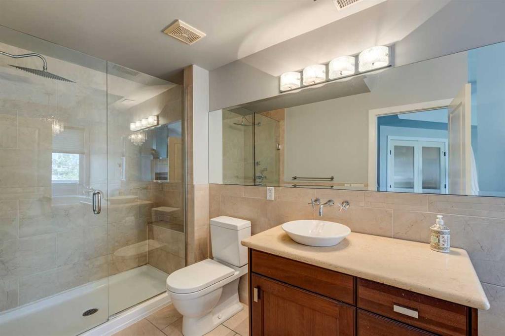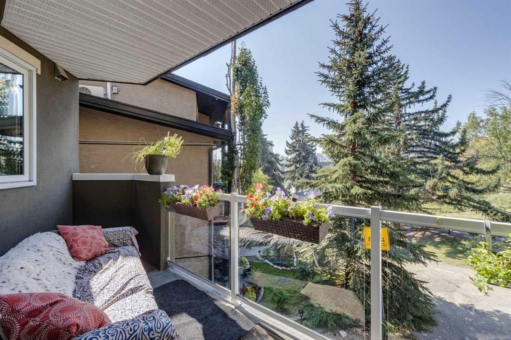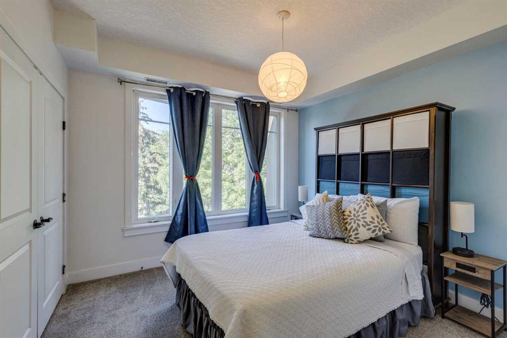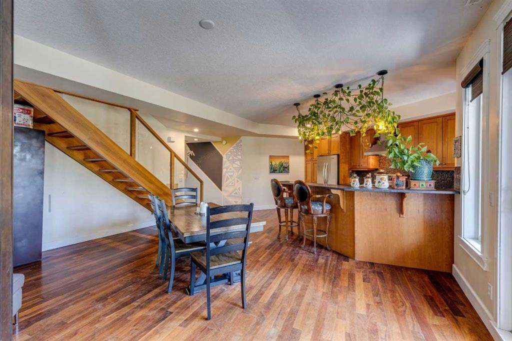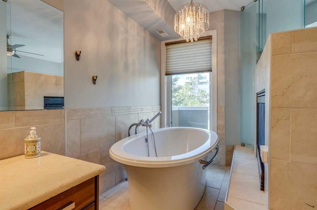 This stunning 2-storey townhome (1,491 sq. ft.) offers modern architecture, open-concept design, and timeless style—all highlighted by rich walnut hardwood floors. A true inner-city retreat in a trendy, established community, this home delivers a maintenance-free lifestyle with spectacular downtown views from three balconies. Step inside and discover a bright, open living space perfect for entertaining. The gourmet kitchen boasts abundant cabinetry, granite countertops, stainless steel appliances, and a huge breakfast bar—ideal for the home chef. Summer evenings are made for BBQs on the two rear decks overlooking the green space and city lights. The dramatic copper-inlaid fireplace is the centerpiece of the large living/dining area, while a convenient 2-piece bath completes the main floor. An architecturally striking floating staircase leads to two spacious bedrooms, each with its own ensuite. The luxurious primary bedroom is a true retreat, featuring glass French doors, a double-sided fireplace, a spa-inspired ensuite with a freestanding soaker tub beneath a chandelier, a walk-in shower, and ample closet space. The second bedroom also includes its own private 3-piece bath—perfect for guests. Just steps to shops, cafés, and restaurants, with easy walkability to downtown, this vibrant area truly has it all. Parking is located in the underground garage, or permit parking on street.