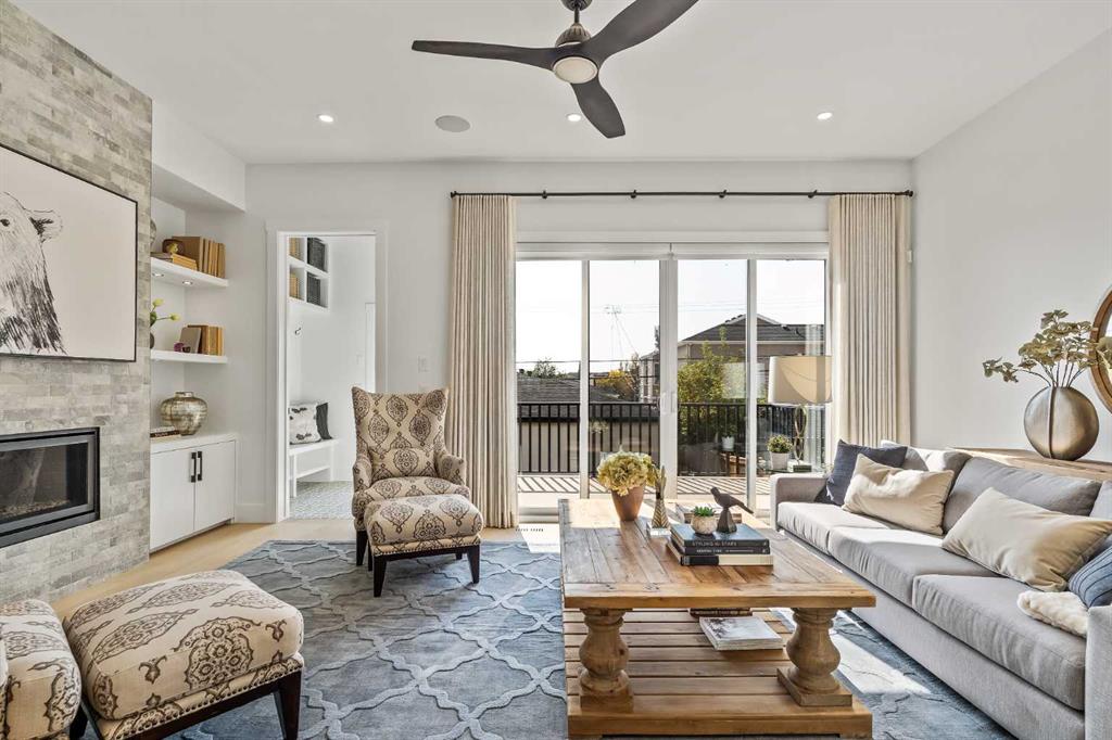 OPEN HOUSE SAT NOV 22, 12:00-2:00 PM MASSIVE PRICE ADJUSTMENT! Built in 2022, this highly upgraded home in the heart of Marda Loop offers over 2,900 sq. ft. of thoughtfully designed living space (2,081 sq. ft. above grade plus 848 sq. ft. developed down).Inside, soaring 10 ft. ceilings, oversized windows, designer lighting, built-in speakers, and hardwood flooring create a bright and modern atmosphere. The gourmet kitchen impresses with industrial-sized appliances, a massive quartz island with breakfast bar, and a beverage centre and loads of built-ins. The living room features full-height cabinetry, a sleek linear fireplace with built-ins, and access to a spacious deck through oversized doors with custom privacy blinds. A dramatic dining room with extensive millwork and ripple-fold drapery completes the main floor, along with a custom mudroom designed for style and function. Upstairs, the luxurious primary retreat boasts a grand tray ceiling, LED feature wall, a walk-in closet with extensive built-ins, and a spa-inspired ensuite with in-floor heating, dual sinks, steam shower, and soaker tub. Two additional bedrooms, a full bathroom, and a large laundry room with sink and storage round out the level. With hardwood flooring and tile in the bathrooms, the only carpet is in the two bedrooms . The fully developed basement offers a large rec room with wet bar and cabinetry, a glass-enclosed gym, a spacious fourth bedroom with walk-in closet, and a stylish 4-piece bath.