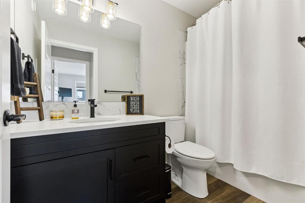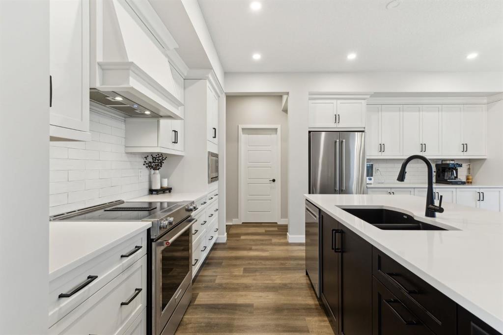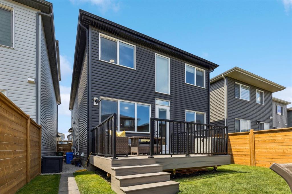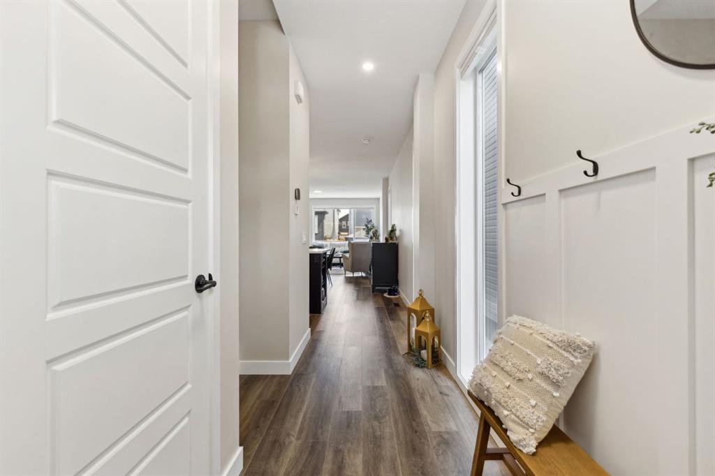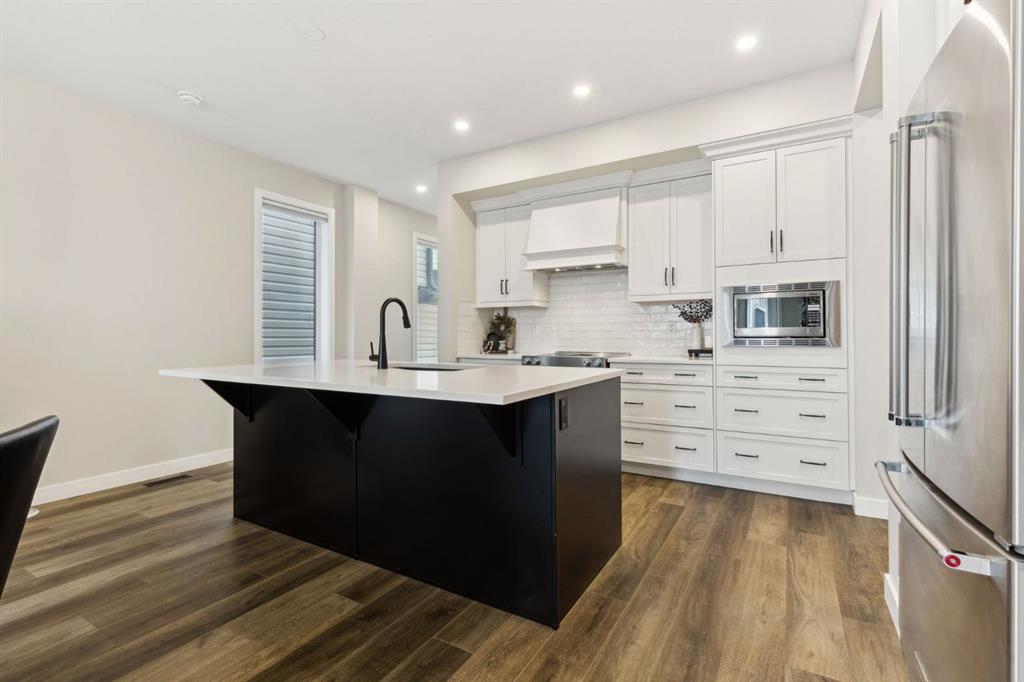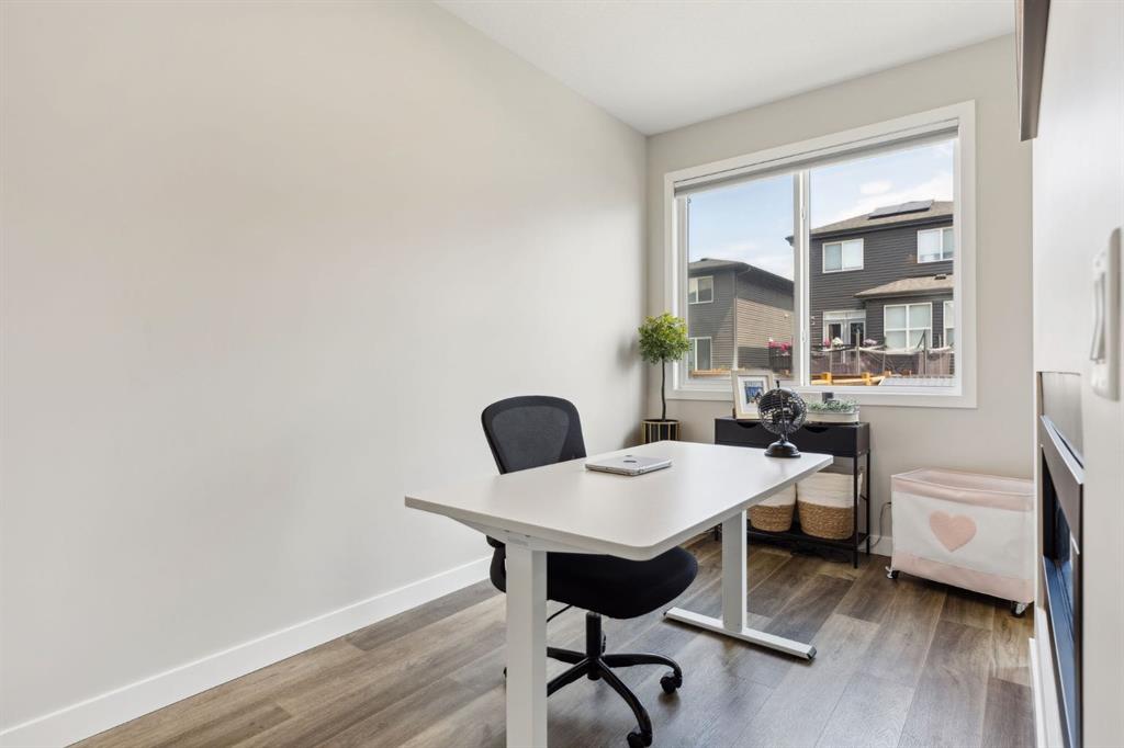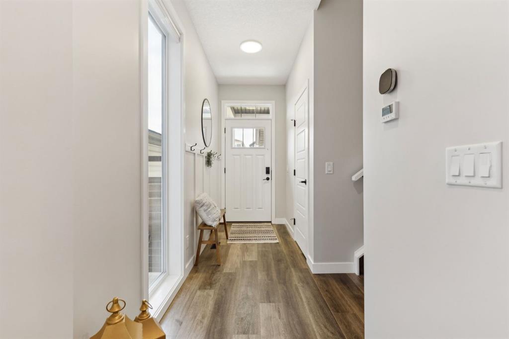 This beautifully designed Jayman built home offers the perfect blend of high-end finishes, thoughtful custom upgrades, and energy efficient features, all located in the vibrant and amenity-rich community of Seton. Inside, the home offers a bright and airy open concept layout enhanced by floor to ceiling windows, luxury vinyl plank flooring throughout, and quartz countertops that combine elegance with everyday durability. The chef-inspired kitchen showcases high end appliances, a custom designed hood fan, and a spacious walk-in butler’s pantry, offering both function and flair. The main living area is anchored by a sleek fireplace with custom mantle, thoughtfully designed as a double-sided feature shared with a cozy den or home office, bringing warmth and ambiance to both spaces. A half bath is conveniently tucked away on the main level.