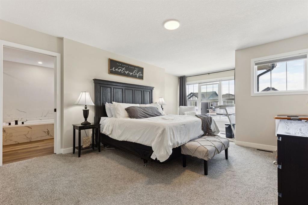 Upstairs, enjoy three spacious bedrooms, a full bathroom, and a bonus room ideal for relaxing or entertaining. The showstopper, however, is the incredible primary bedroom -A true luxury retreat. This expansive space features a seating area and an ultra upgraded 5-piece ensuite with dual vanities, a deep soaker tub framed in designer tile, a large tiled shower, and a TV for next level relaxation. Inside the ensuite, you’ll also find his and hers walk-in closets, a dedicated makeup vanity, and a separate toilet area, combining both indulgence and everyday practicality in one stunning space.