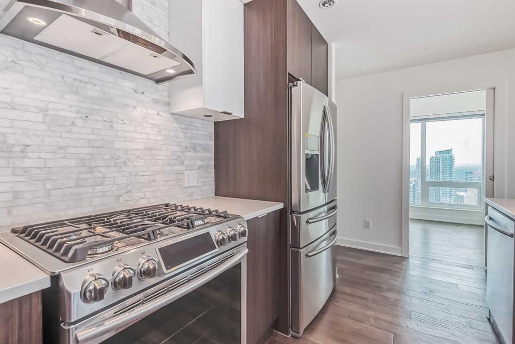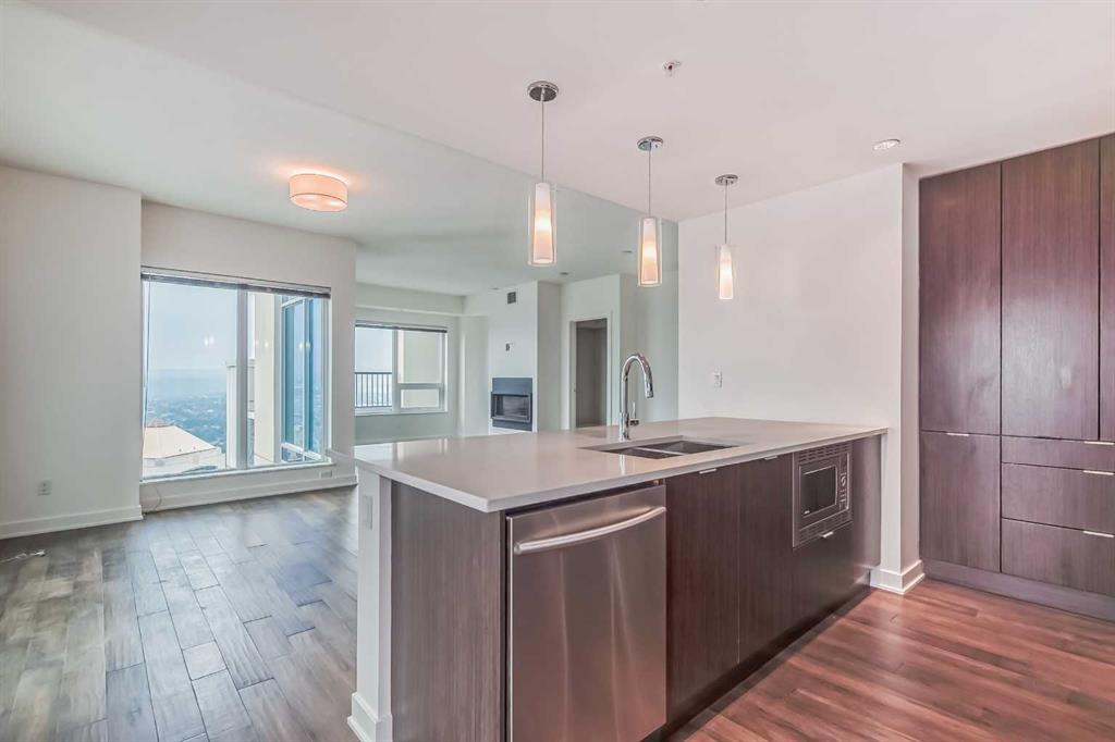 This stunning penthouse home offers captivating views of the Rocky Mountains, Bow River, and Downtown from its three balconies. With 9-foot ceilings, central air conditioning, and a fireplace in the main living area, the atmosphere is both spacious and cozy. The modern kitchen is equipped with stainless steel appliances, including a gas cooktop, allowing for gourmet cooking experiences. The ample eating bar provides a convenient and stylish space for dining. Both private bedrooms boast their own ensuites and balconies, ensuring a peaceful and personal retreat within the home. Additionally, there is an office/den area, offering a versatile space for work or relaxation. The penthouse includes two titled parking stalls, providing convenience and security. The building itself offers a range of amenities, including a concierge in the main floor lobby, a gym, an owner's lounge, a yoga studio, a meeting room, and a recreation/games room. Conveniently located near downtown amenities and the C-train, the building is also just steps away from the Bow River, offering easy access to outdoor activities and scenic walks. This penthouse home truly combines luxury, comfort, and convenience in an exceptional location. Penthouse comes with 2 covered parking. Do check the Virtual tour link included for walkthrough.