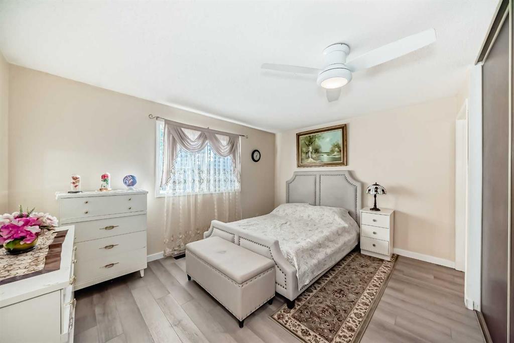 From the moment you step inside, you’ll appreciate the bright and cheerful living room, featuring (new) French doors that open to the private backyard. The dining area is filled with natural light, offering space for a generous table and additional cabinets and counter space. The kitchen has been fully renovated with quartz countertops, modern white cabinetry with soft-close drawers, and stainless steel appliances. The main floor includes three spacious bedrooms. The primary retreat features a 4-piece ensuite, large closet and ceiling fan for comfort. The main floor 4-piece bathroom has been beautifully updated to include a stand up shower and large vanity. Conveniently, the washer and dryer are also located on the main level. A separate entrance leads to the finished basement, which offers a cozy family room, a versatile flex space (perfect for an office or gym) and a spacious fourth bedroom with direct access to a full 3-piece bathroom, which is also accessible from the family room. Step outside to the large backyard, complete with a charming covered deck, mature landscaping with an amazing flower garden, a firepit area, and plenty of space for kids and pets to play. With no neighbours behind, you’ll enjoy privacy and quiet, plus a double parking pad off the back alley and ample street parking. Recent updates include new flooring throughout, new French doors in living room, updated bathroom, a fully renovated kitchen, a new roof (June 2025), a newer hot water tank (March 2019), and a well-maintained furnace. This home has been loved and meticulously cared for—move-in ready and waiting for you. Ideally located close to the Strathmore Aquatic Centre, Brentwood Elementary, Strathmore High School, and numerous parks and amenities and quick access to the highways. Call your favourite realtor and book a showing today!
