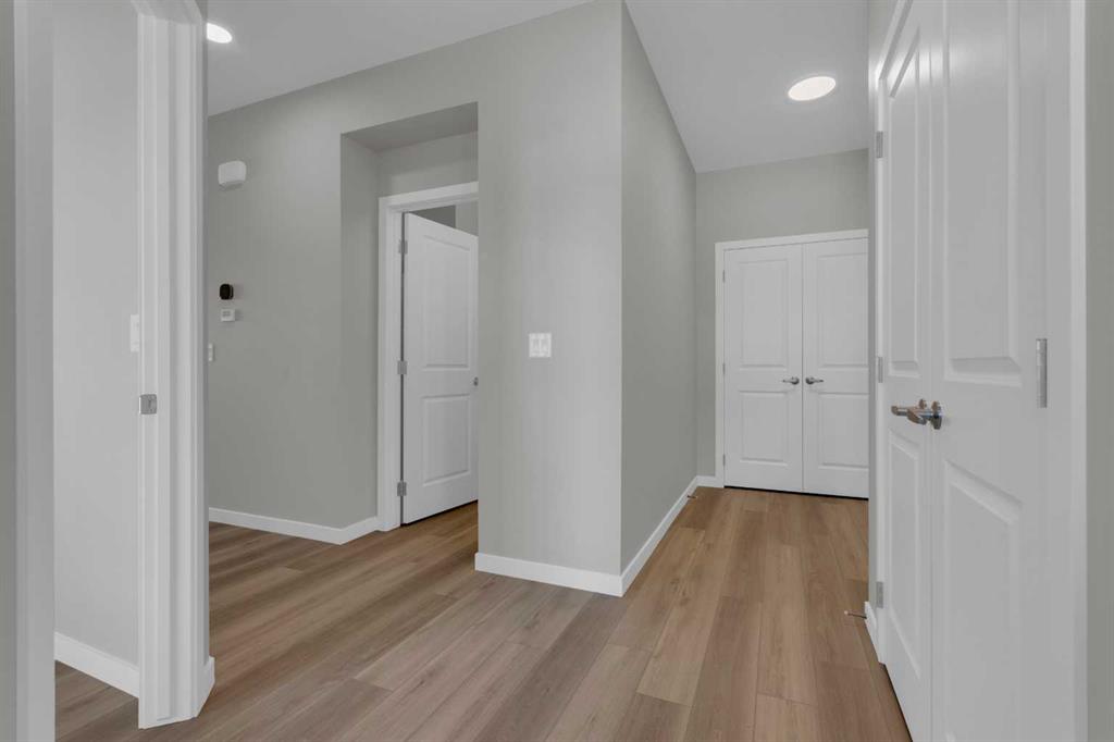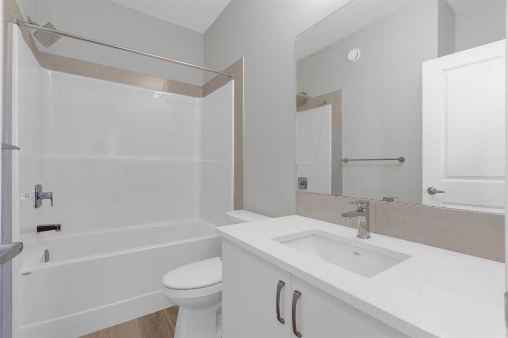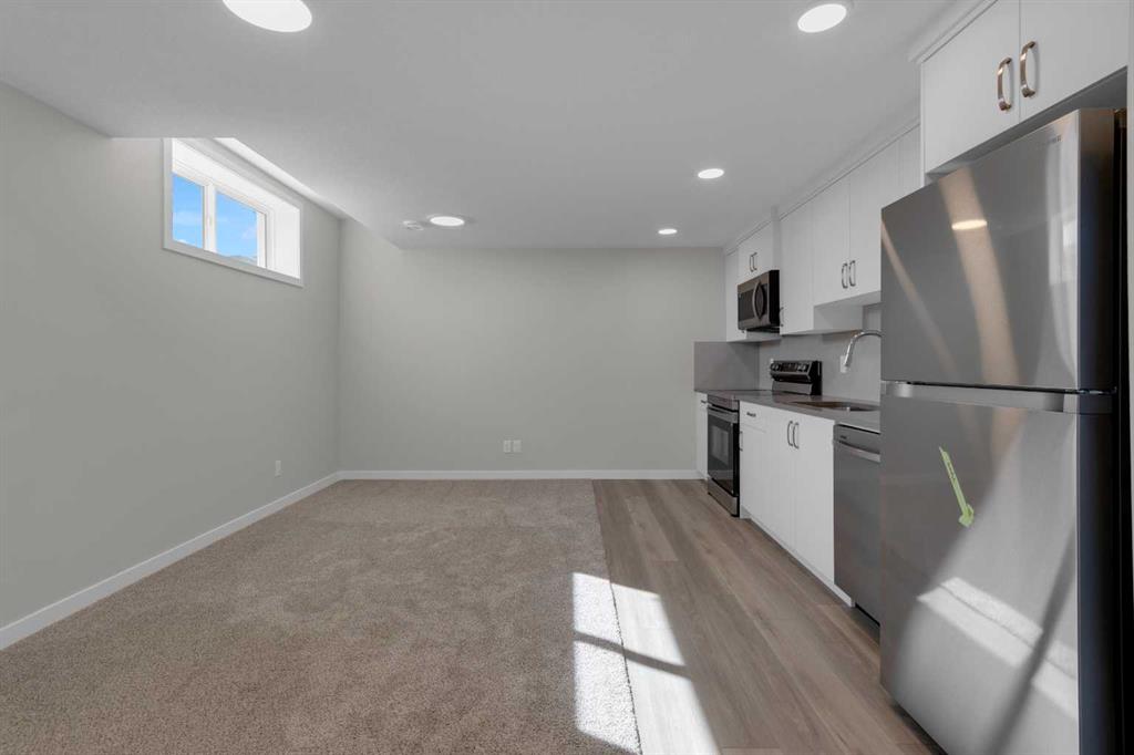 BRAND NEW – NEVER LIVED IN! A gorgeous new home built by Excel Homes! Presenting the Oxford A, this stunning residence offers over 2560 sq ft of above-grade living plus an amazing LEGAL TWO BEDROOM SUITE built to upstairs standards. Perfectly located in Silver Spruce, the newest subdivision in Calgary’s highly desirable community of Silverado, this home combines modern design with everyday convenience. You’ll love the community’s established feel, along with easy access to transit, major arteries, golf, shopping, schools, and parks. Even better, this property backs directly onto an environmental reserve, ensuring lasting backyard privacy. Step inside and experience the upgrades everywhere you turn. The main floor is bright and open with oversized windows filling the home with natural daylight. A full 4-piece bath is conveniently located next to the main floor bedroom, perfect for guests or family. The heart of the home is the chef-inspired kitchen with crisp white cabinetry, endless drawers and cabinets, a large walk-in pantry, built-in stainless steel oven and microwave, countertop range with chimney hood fan, and an impressive 9’ island for prep and gathering. Adjacent to the family-sized dining nook, sliding patio doors lead to a massive full-width deck overlooking the reserve, while the family room is anchored by a cozy fireplace with floor-to-ceiling tile surround. Upstairs, the layout delivers 4 spacious bedrooms including a serene primary retreat with views of the reserve, a spa-inspired 5-piece ensuite with stone countertops, double wide shower, and a tile-skirted soaker tub. Bedrooms 2 and 3 both feature walk-in closets, while every room is filled with natural light. A central bonus room separates the primary from the secondary bedrooms, creating privacy, and the upper laundry room offers shelving and functionality. The 4-piece family bathroom on this level is designed with dual sinks—perfect for busy mornings. The legal suite is just as impressive, offering its own fully equipped kitchen, a spacious family room, 4-piece bath, and two large bedrooms with egress windows. Private storage, under-stair storage, and separate utilities make this a turnkey opportunity for multi-generational living or revenue potential. Certified Built Green, this home is energy-efficient and designed with today’s lifestyle in mind. Your garage has high ceilings & epoxy floors! With 5 bedrooms above grade plus 2 in the suite, luxury finishes throughout, and quick possession available, this property is an absolute must-see.