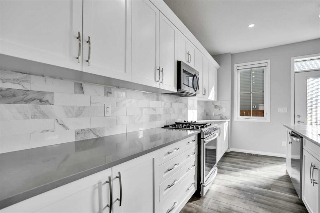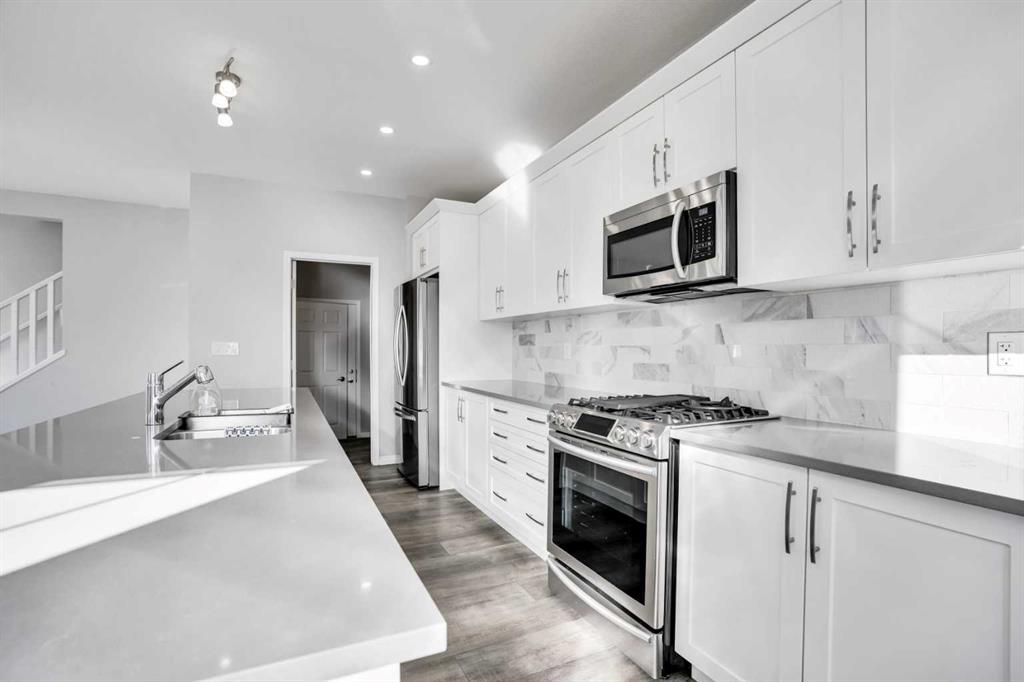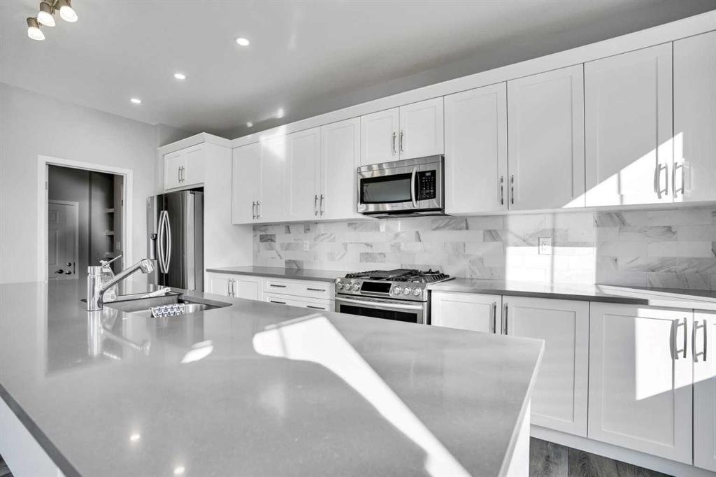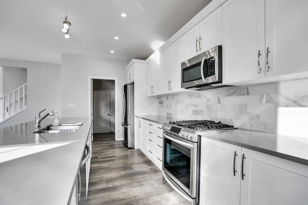 ** WATCH 3D TOUR** Welcome to this stunning, gorgeous 3+ bedroom, 4-bathroom Detached home with a Double Attached Garage, offering over 2500 sq ft of luxurious living space in the prestigious and family-friendly Carrington community. This home offers exceptional style and functionality with a main floor half bath, Living Room, Kitchen, Dinning, perfect for multi-generational living. The open-concept layout features elegant LVP flooring through out the Main Floor, zebra window blinds, a spacious stylish kitchen with a large island, almost full-height cabinetry, stainless steel appliances including a gas range, built-in microwave, and walk-in pantry. Enjoy natural light throughout the bright living and dining areas, with patio door leading to a landscaped backyard—ideal for outdoor entertaining. Central air conditioning keeps the home cool and comfortable year-around. Upstairs boasts a luxurious primary bedroom with a 5-piece ensuite (dual vanity, soaker tub, separate shower, walk-in closet), two additional large bedrooms with walk in closets, a bonus room, convenient laundry, and a spacious bathroom with shower. The fully developed basement includes 8-ft ceilings, a modern Wet-Bar, two large bedrooms with big windows, a full bathroom with a modern vanity and a shower, storage area and a spacious living/Game area perfect for entertainment or extended family. This home features a beautifully landscaped backyard ideal for outdoor enjoyment. new roof and siding (Nov 2024) Located in a vibrant and upscale neighborhood, you’ll enjoy close proximity to Stoney Trail, parks, playgrounds, schools, shopping centers, restaurants, and essential services including No Frills, McDonald’s, medical clinics, and a friendly community with an active lifestyle. Don't miss the opportunity to make this remarkable home your own.