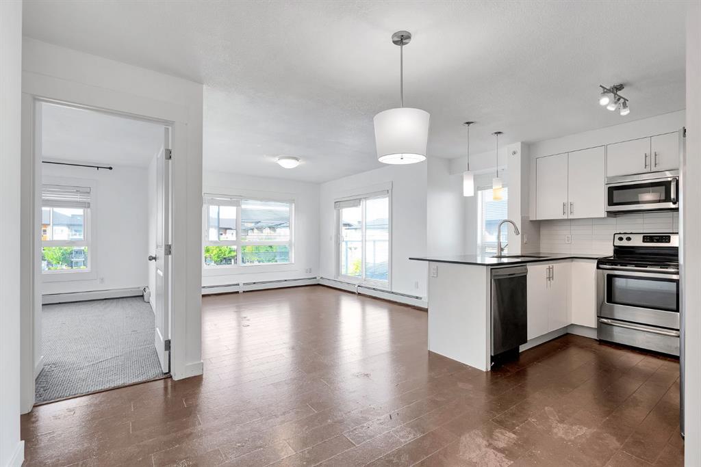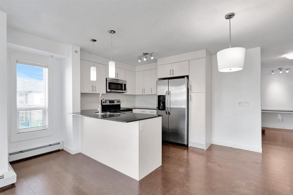 Welcome to 4407, 240 SkyView Ranch Road NE, a rare opportunity to own a stunning top-floor penthouse corner unit with one of the largest private balconies in the complex. Featuring a massive 17’ x 7’9” deck, this home is designed for both relaxation and entertaining while offering unobstructed views and all-day natural light. Inside, the bright and spacious open-concept layout is enhanced by oversized windows that flood the entire home with sunshine. The stylish kitchen boasts modern cabinetry, sleek counters, and stainless steel appliances, seamlessly connecting to the dining and living areas. Built in 2015, this home showcases contemporary finishes that create a warm yet upscale feel. This thoughtfully designed floor plan includes two large bedrooms and two full 4-piece bathrooms. The primary retreat features a walk-in closet and private ensuite, while the second bedroom and full bath are ideal for family, guests, or a dedicated home office. Practical touches make living here a breeze with a titled parking stall and assigned storage for added convenience. Perfectly located in the vibrant community of SkyView Ranch, you’re close to schools, parks, shopping, transit, and major roadways — everything you need is just minutes away. Don’t miss your chance to call this exceptional penthouse home. Welcome home!