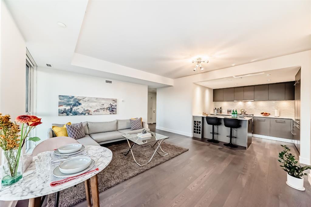 Welcome to this breathtaking 2-bedroom, 2-bathroom residence featuring an award-winning floor plan and unbeatable views from every corner. Step onto your west-facing balcony and take in stunning sunsets overlooking the Bow River and mountains.