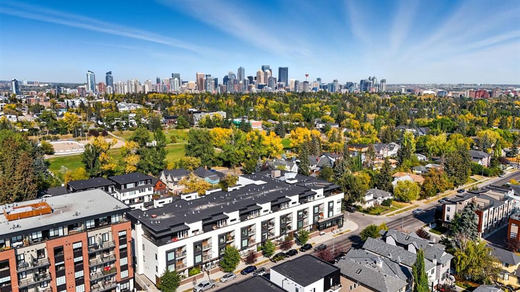 Bright & spacious 3-bed, 3-bath TOP FLOOR CORNER UNIT in this sought-after South Calgary low-rise — offering nearly 1,155 sq ft of living space with 10 FOOT CEILINGS! The heart of this home is the stylish kitchen, beautifully appointed with quartz countertops, sleek cabinetry, stainless steel appliances, a bar fridge and a functional kitchen island with seating. Flowing seamlessly from the kitchen, the open layout features a generous dining area and a sun-filled living room framed by large picture windows that enhance the airy feel. The primary bedroom is a true retreat, complete with a walk-in closet and private 4-piece ensuite. The second bedroom features a 3-peice ensuite, with the third bedroom and 4-piece bath providing flexible options for family, guests or a home office. Additional highlights include a stunning and private outdoor terrace, TWO TITLED UNDERGROUND PARKING STALLS and an assigned storage locker. Residents enjoy superb amenities such as a fitness centre, guest suite, pet wash, secure underground parking with 10 visitor parking stalls + EV charging stall and bicycle storage.