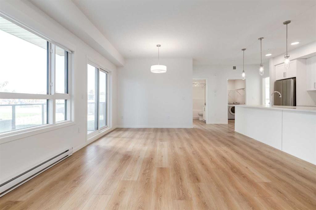 Introducing SETON SERENITY, a highly sought-after development in SETON, Calgary. BUILT BY CEDARGLEN LIVING, WINNER OF THE Customer Insight BUILDER OF CHOICE AWARD, 6 YEARS RUNNING! BRAND NEW CORNER UNIT, "L3" floor plan with high-spec features. You will feel right at home in this well thought-out 1059.39 RMS sq.ft. (1125 sq.ft. builder size) 2 bed, 2 bath home with open plan, 9' ceilings, LVP flooring through-out (upgraded, no carpet), Low E triple glazed windows, electric baseboard heating, BBQ gas line on the patio, A/C Rough in, and Fresh Air System (ERV). The kitchen is spectacular with an extended island upgrade, quartz counters, undermount sink, S/S appliances, upgraded Chimney Hood Fan, and pantry. The extended island is stunning and transitions into the spacious living & dining area, perfect for entertaining. The spacious primary bedroom has a large bright window, sizeable walk-in closet and 4 pc ensuite with extra drawers & full height tile upgrade. 1 additional bedroom located across the unit for noise reduction/privacy and 4pc bathroom (also with upgraded full height tile) located nearby. Laundry & storage closet is thoughtfully planned, definitely a must see (washer/dryer included). Highlights include: upgraded lighting package, sound reducing membrane to reduce sound transmission between floors, clear glass railing to balconies and 1 titled underground parking stall included. There are many bespoke amenities outside your front door, so park the car and put on your walking shoes. The LARGEST YMCA IN THE WORLD and the SETON HOA is just around the corner. SOUTH HOSPITAL, shopping, restaurants and cafes are all just a short stroll away. PET & RENTAL FRIENDLY COMPLEX. VIRTUAL TOUR AVAILABLE!